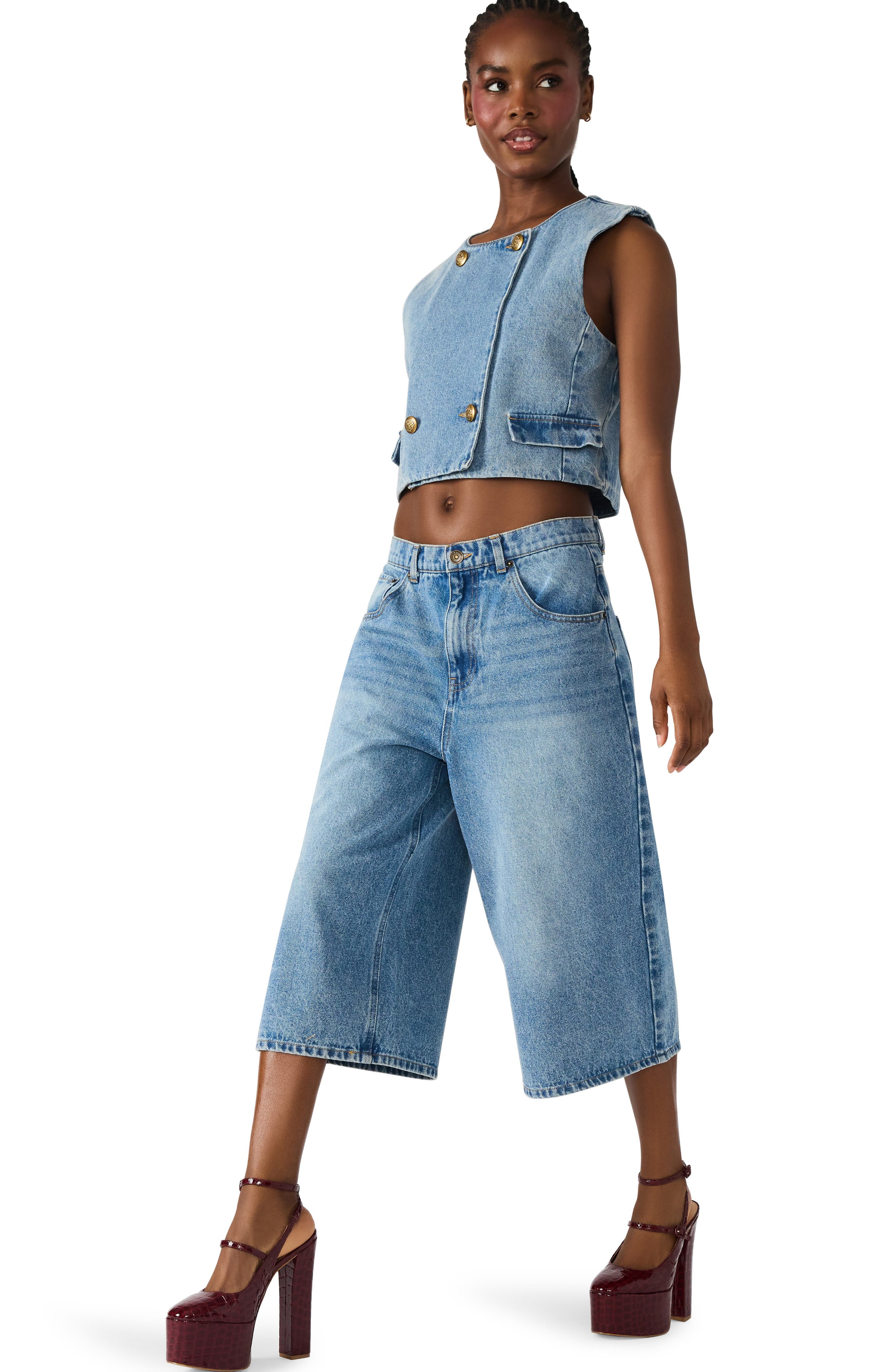 Steve Madden Brea Low Rise Longline Bermuda Denim Shorts_Forever Blue
