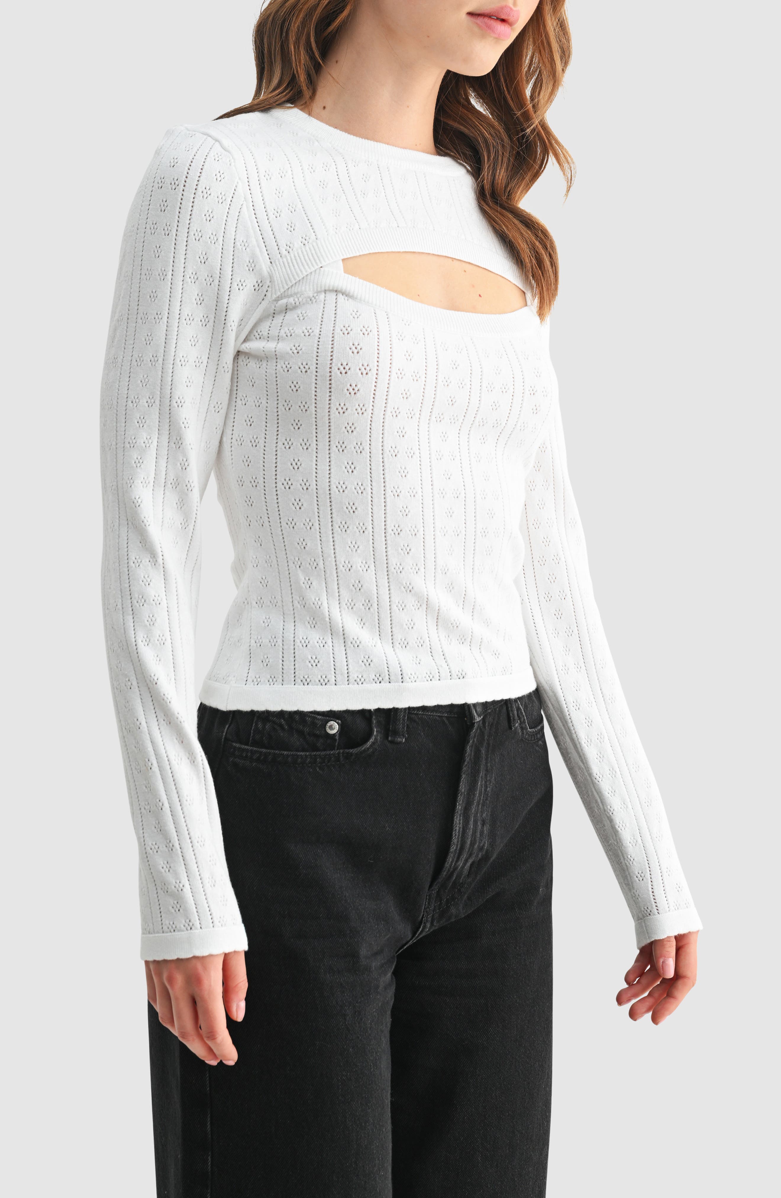 All in Favor Cutout Detail Pointelle Sweater_Cream
