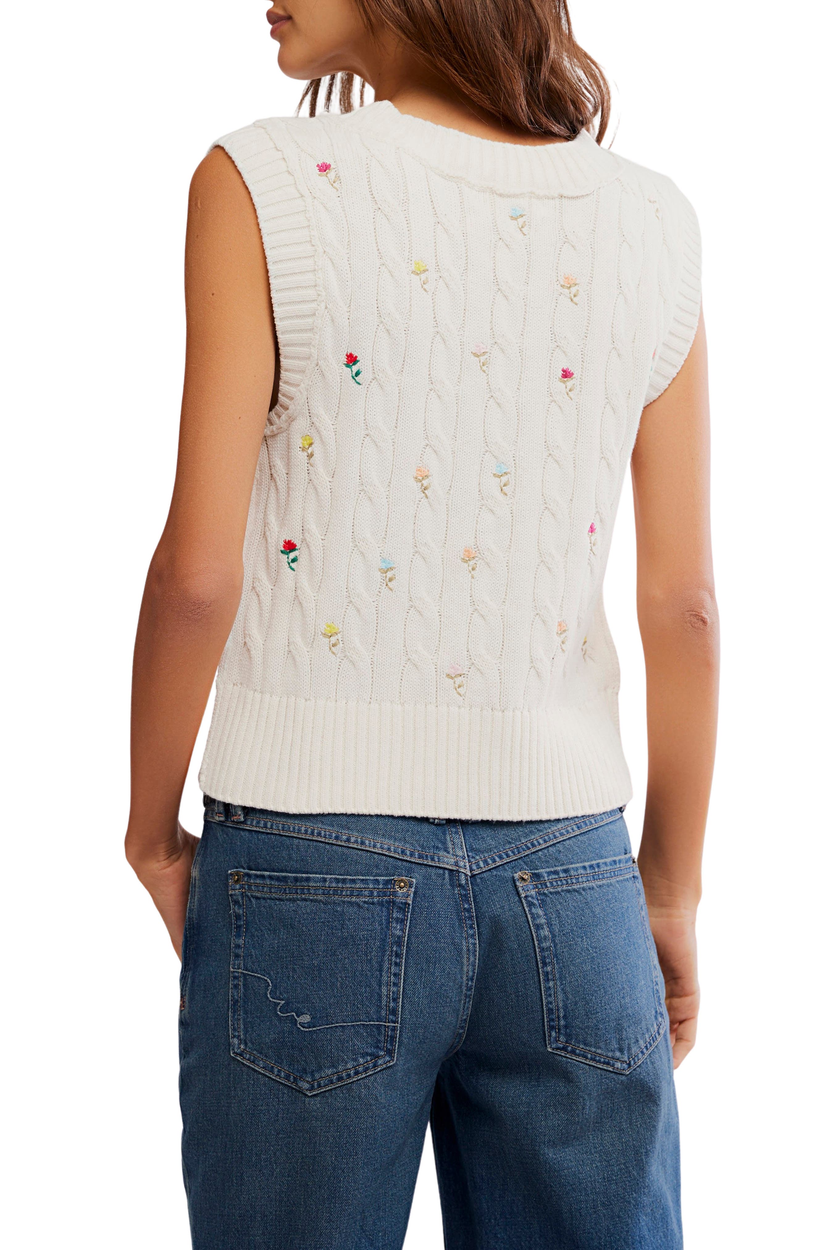 Free People Plumeria Floral Embroidered Cable Stitch Vest_Ivory Combo