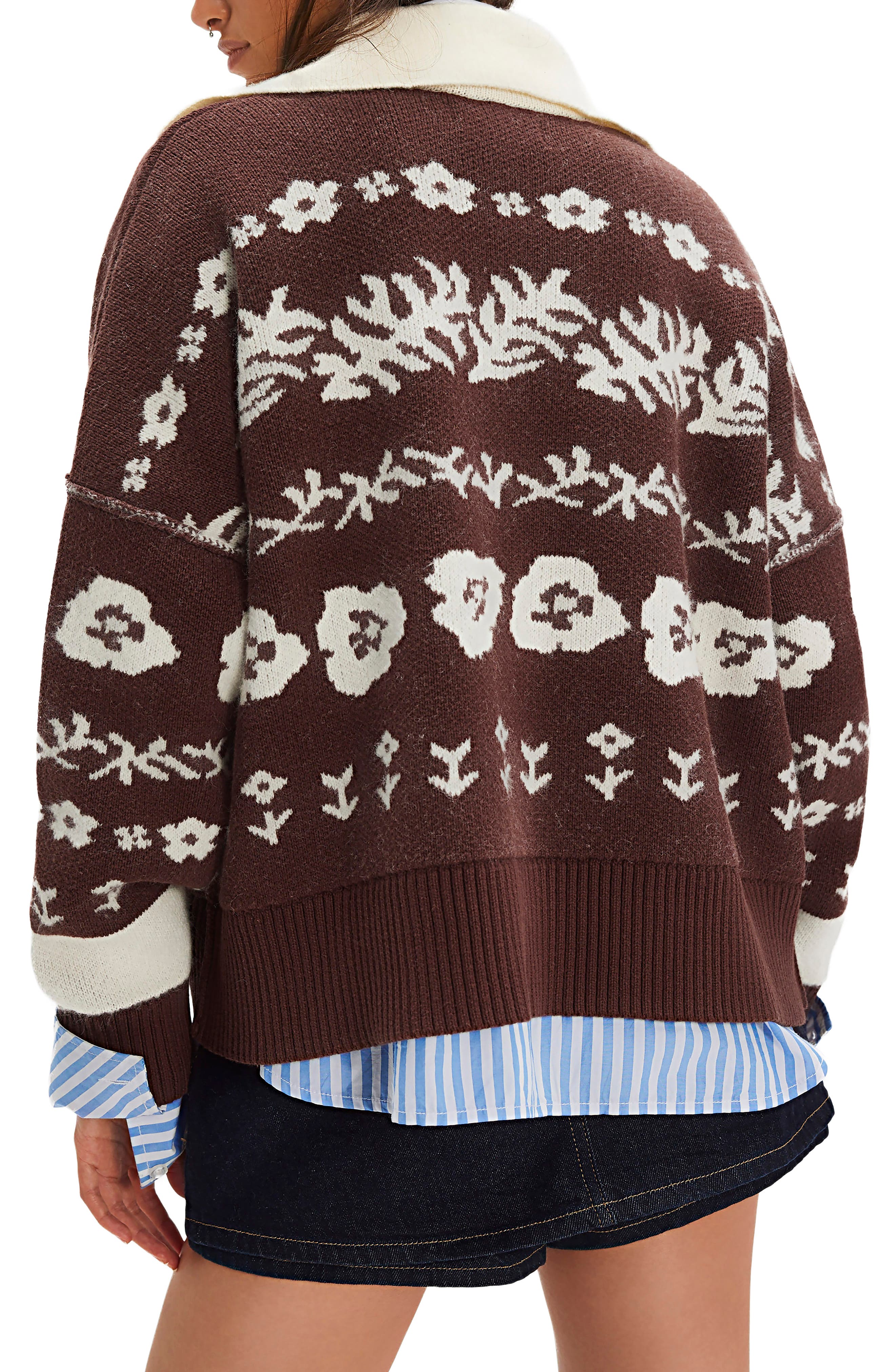 Free People Shelby Floral Jacquard Cotton Cardigan_Chocolate Combo