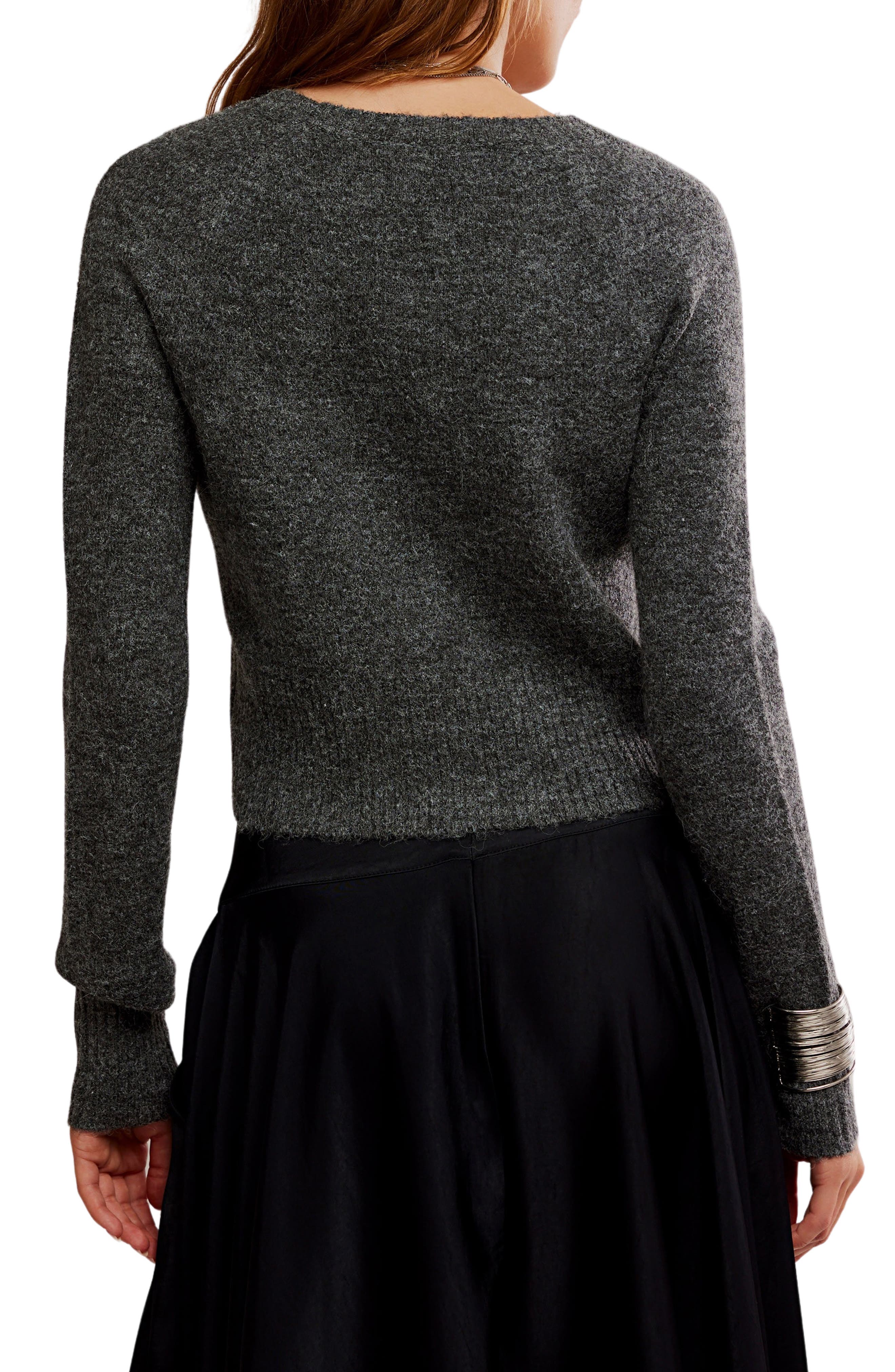 Free People School Girl Crop Wool & Cashmere Cardigan_Charcoal Heather