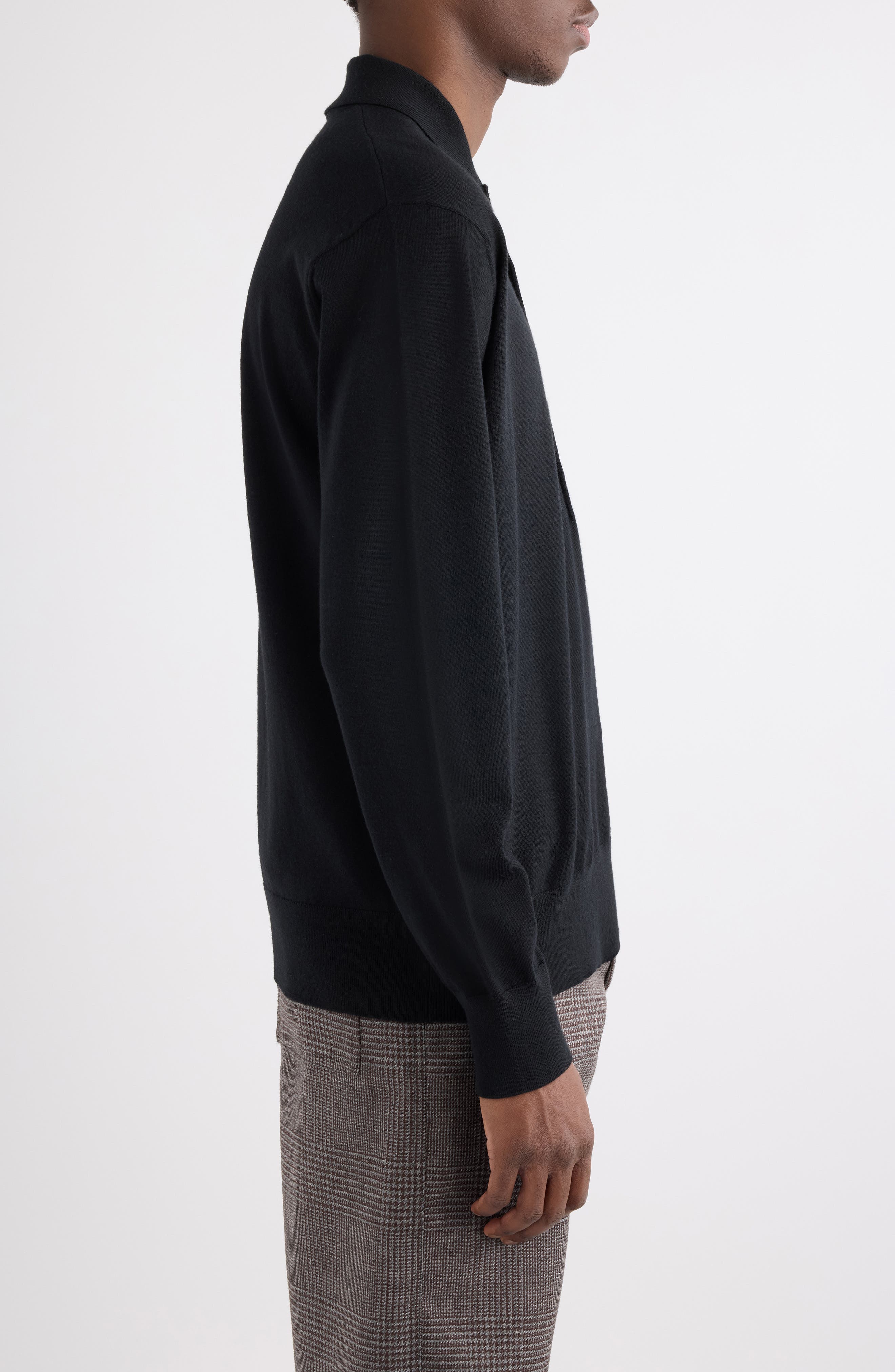 Dries Van Noten Muano Merino Wool Polo Sweater_Black