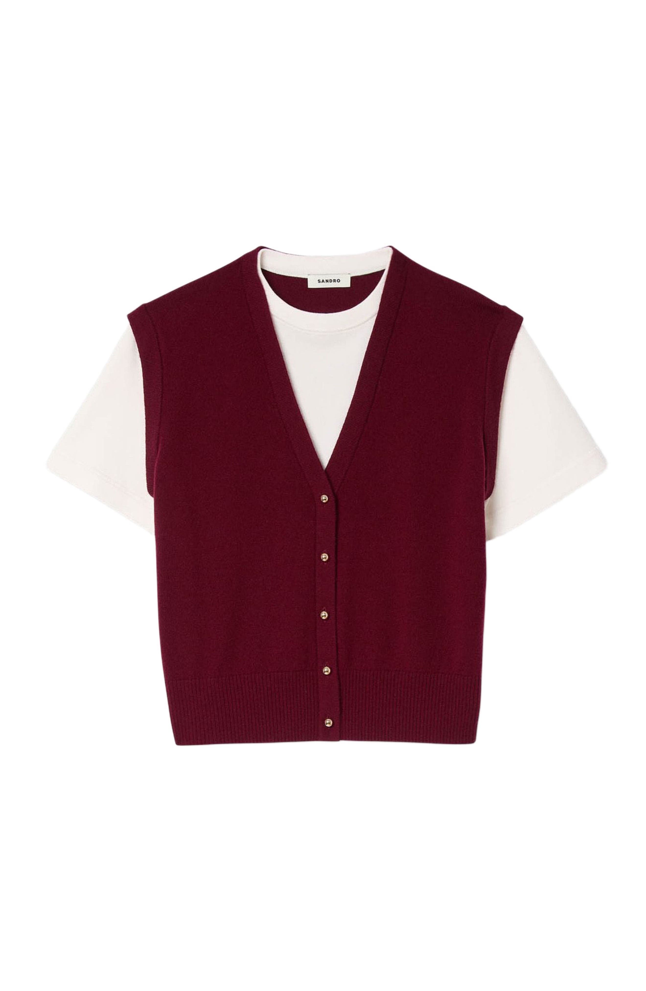 SANDRO Two-tone wool and cashmere sweater_Bordeaux