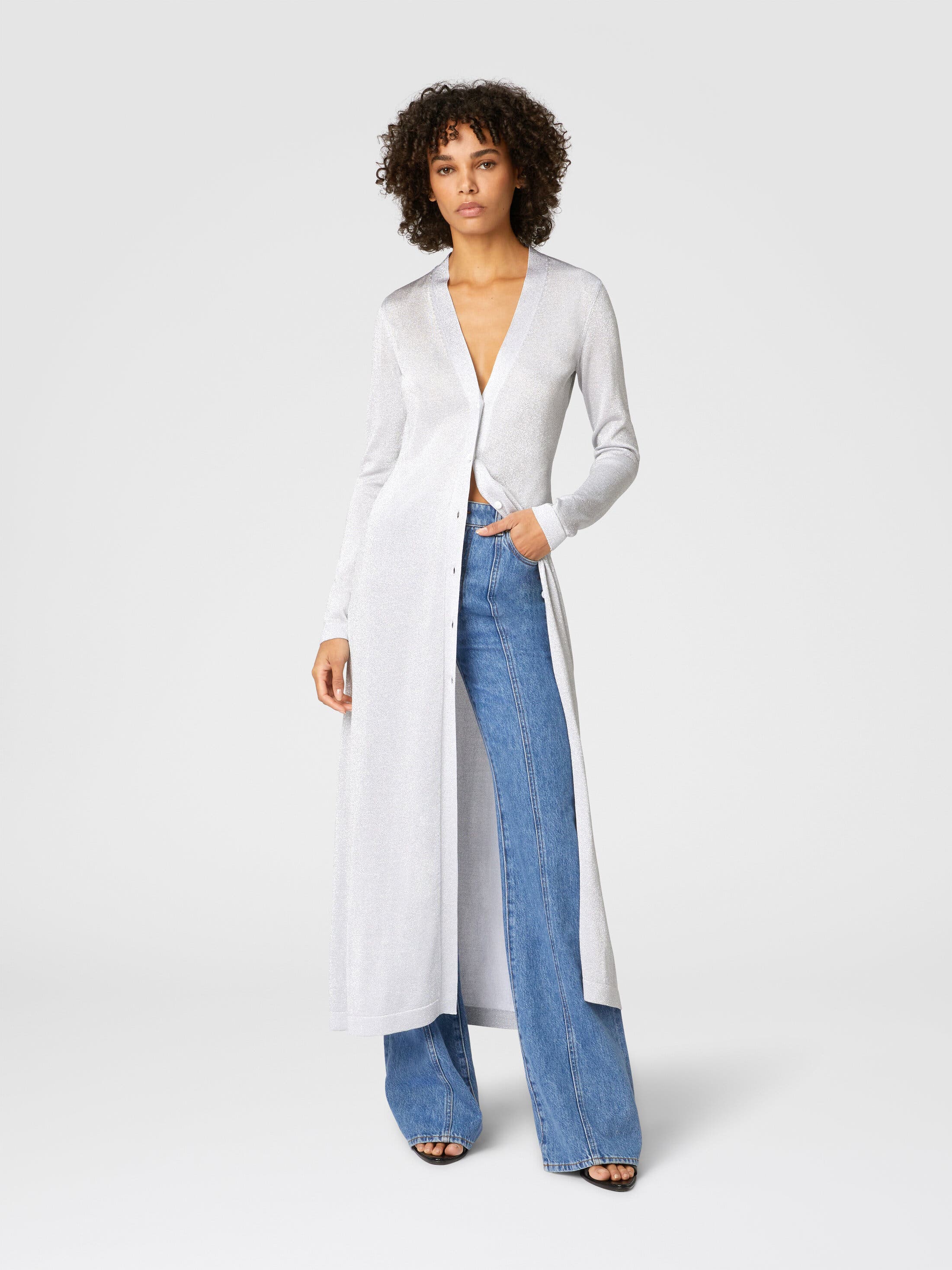 Missoni Long Lame Viscose Cardigan With V-neck_Silver