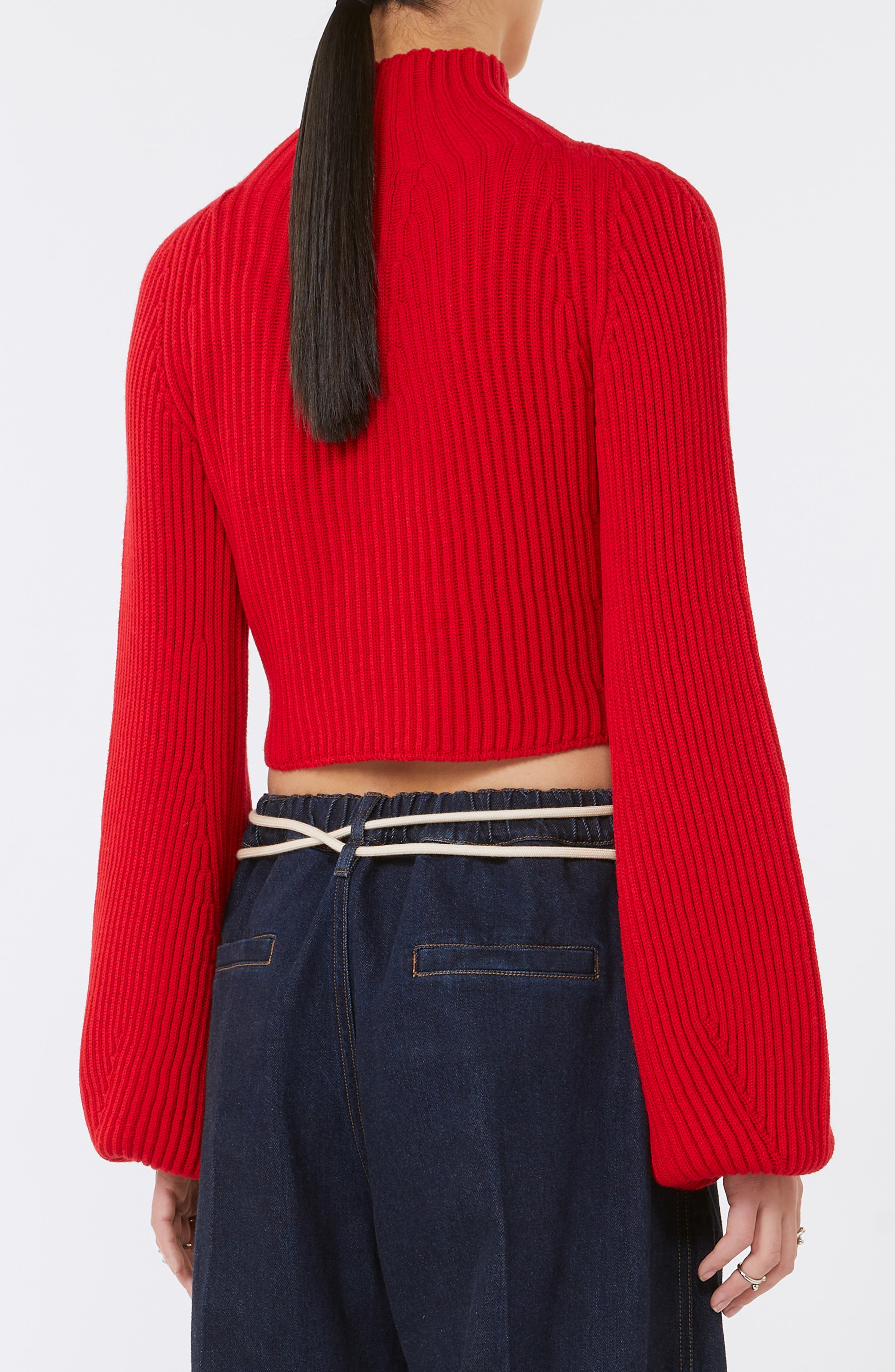 SPORTMAX Marmo Bell Sleeve Crop Sweater_Red