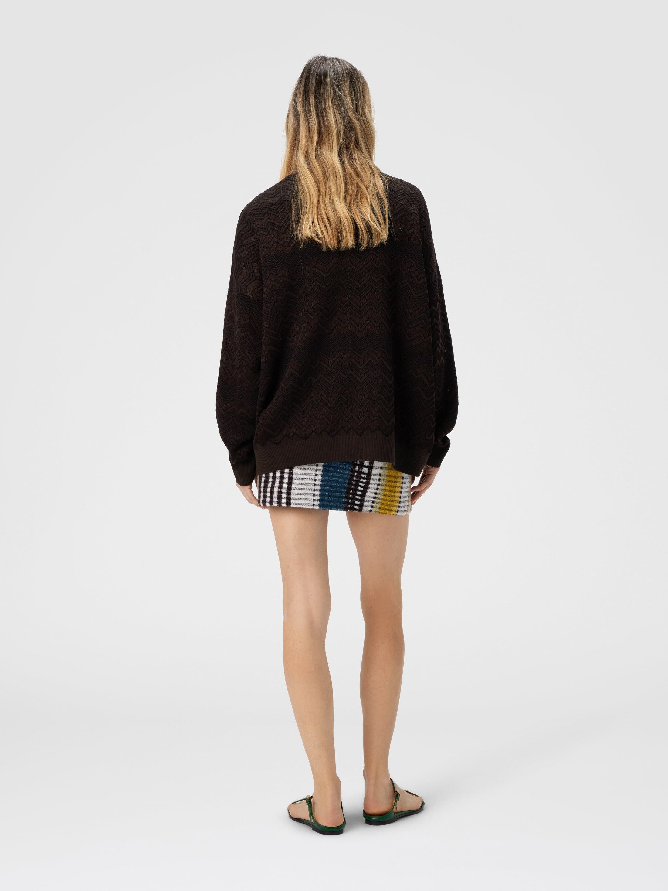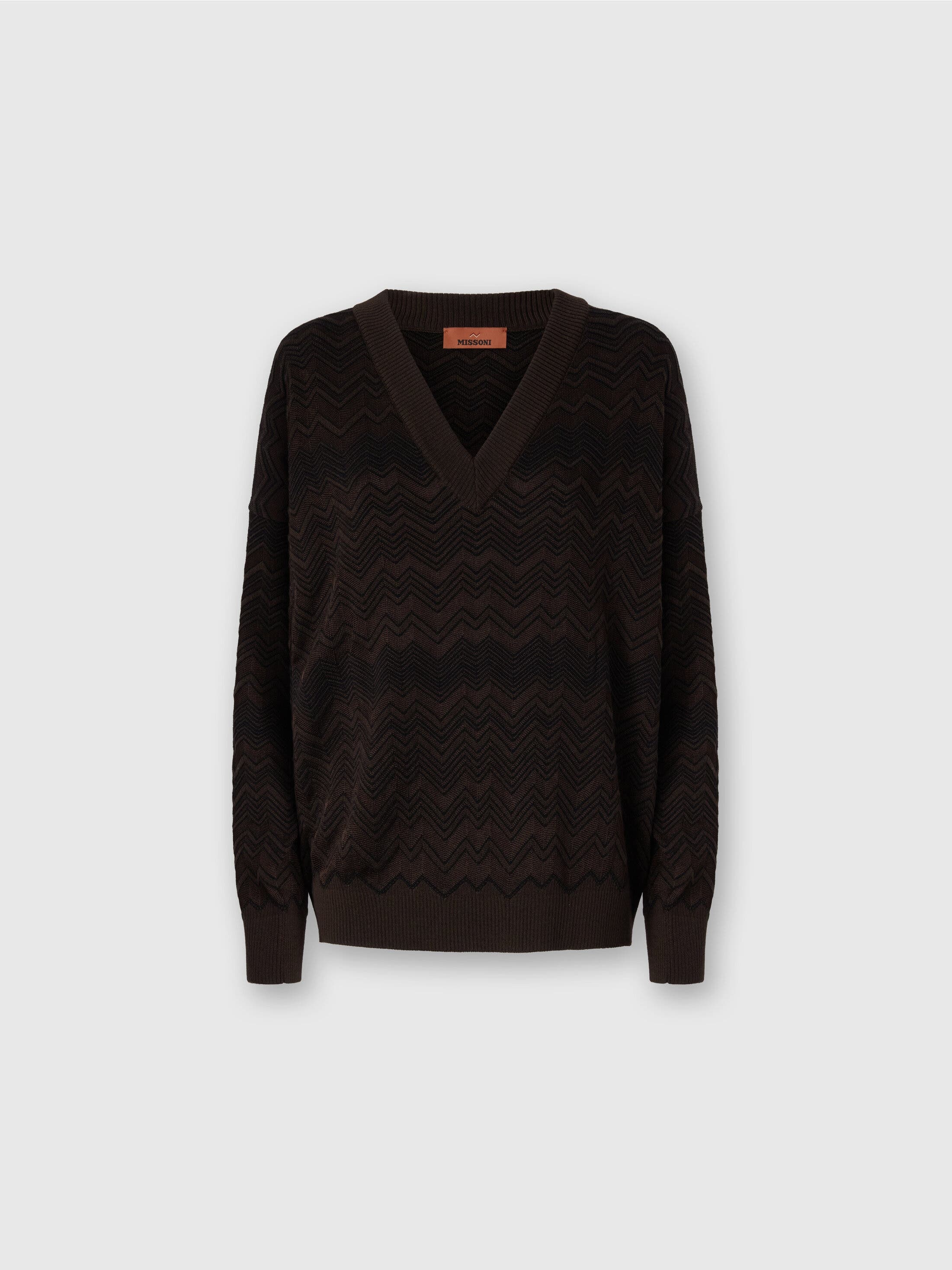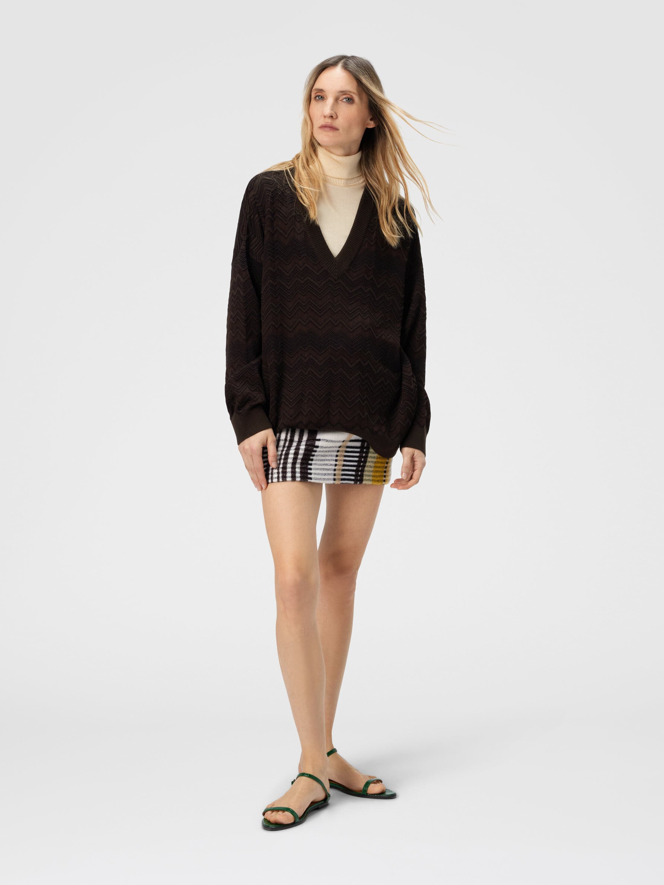 Missoni Oversized V-neck Sweater In Chevron Pattern_Brown