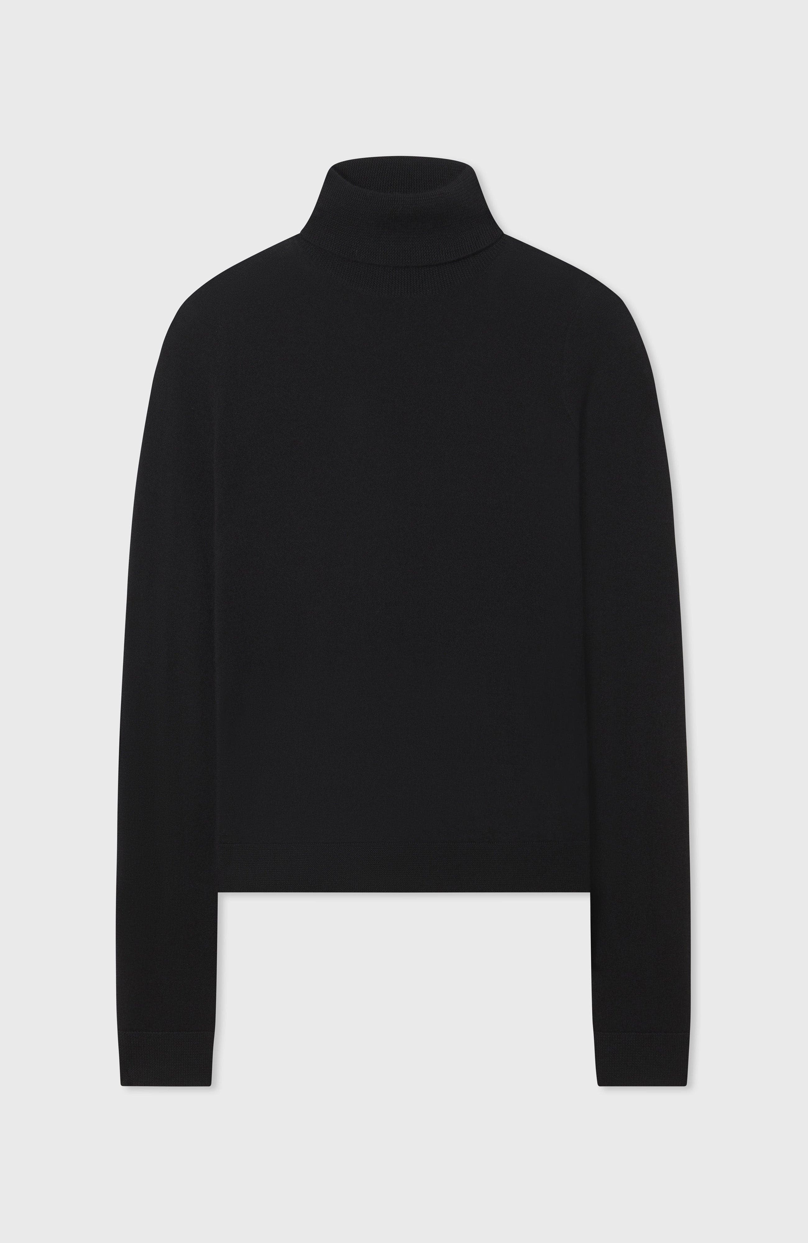 CO Slim Turtleneck Top in Fine Cashmere_Black