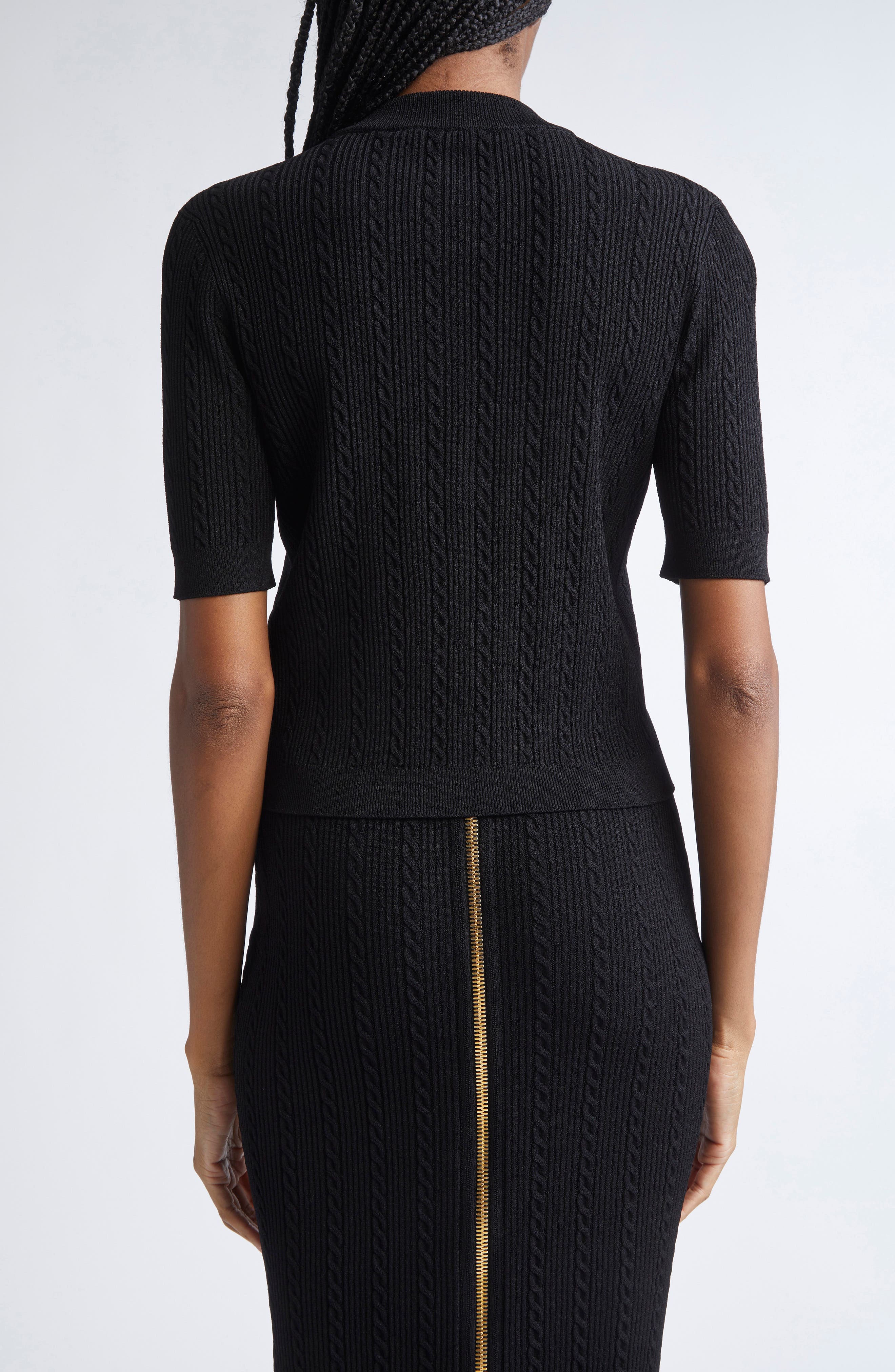 Balmain Cable Stitch Short Sleeve Cardigan_0Pa Black