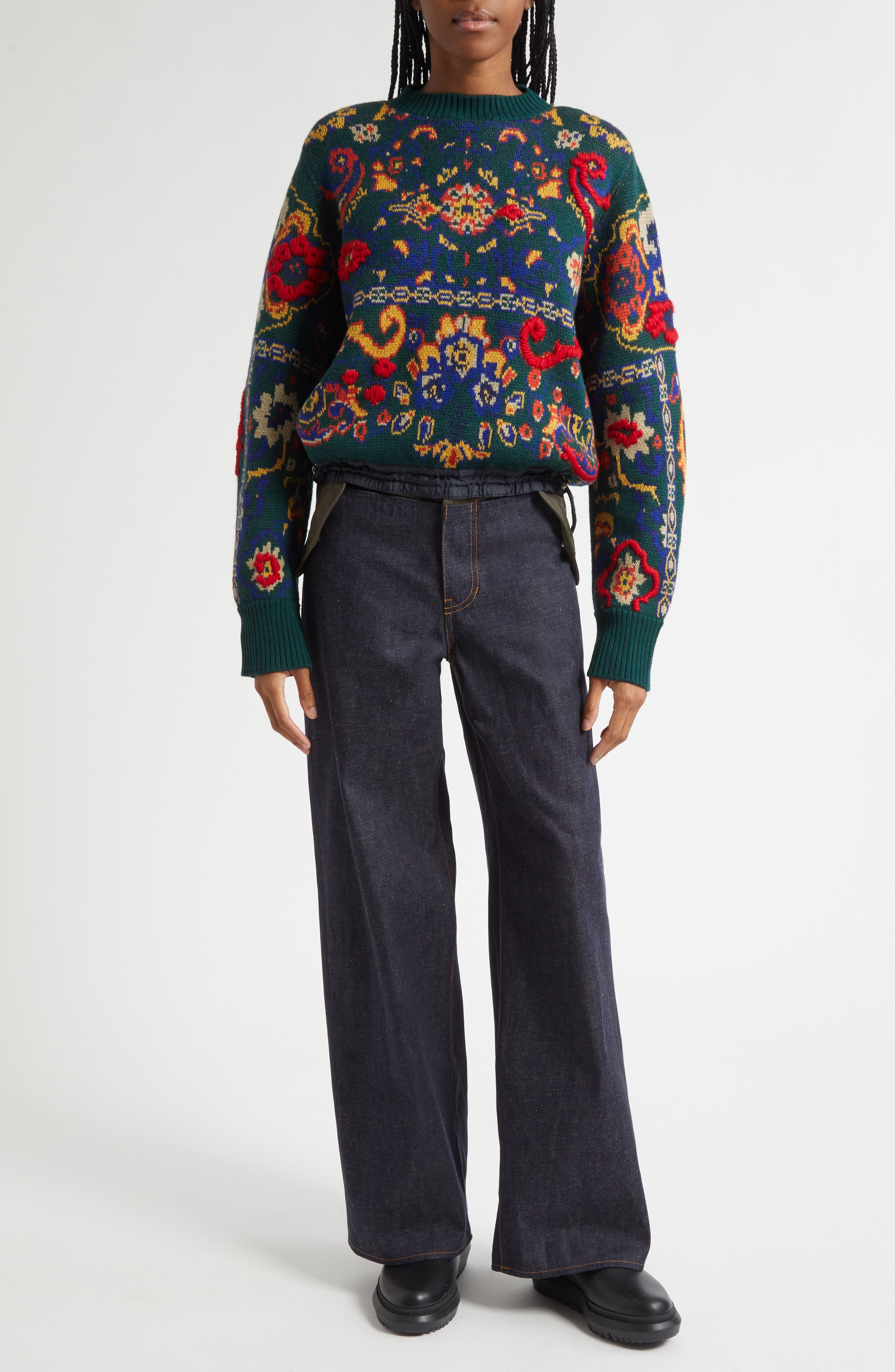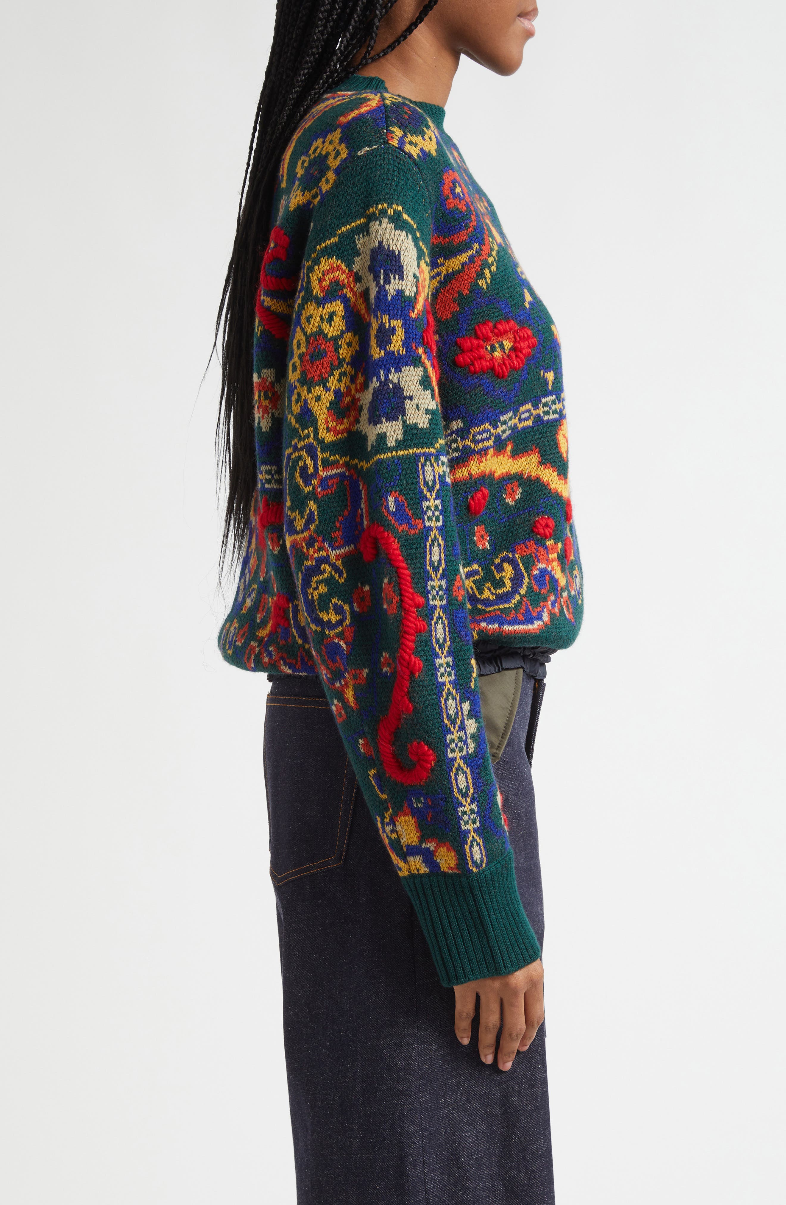 Sacai Floral Jacquard Wool Sweater_Green