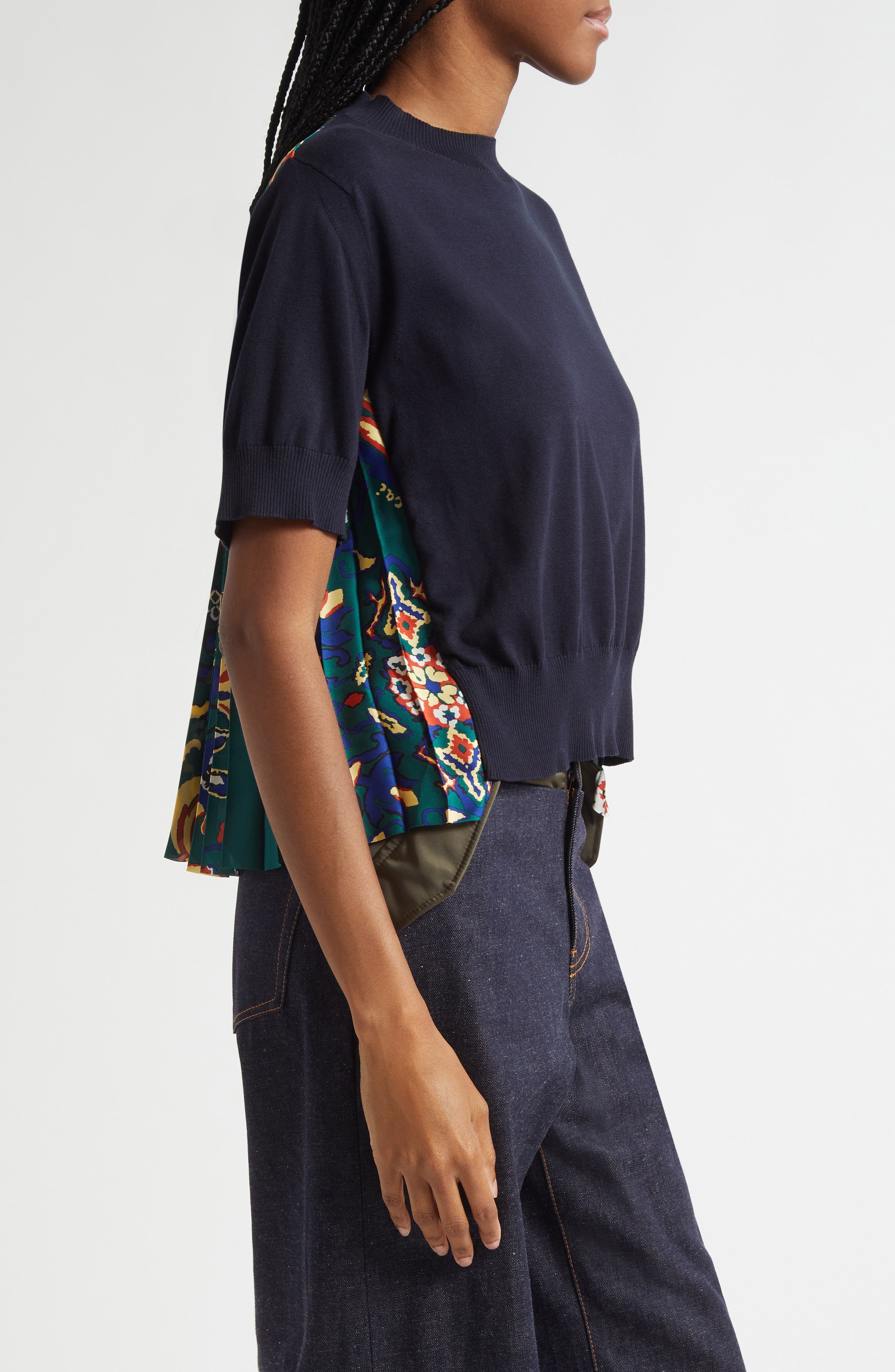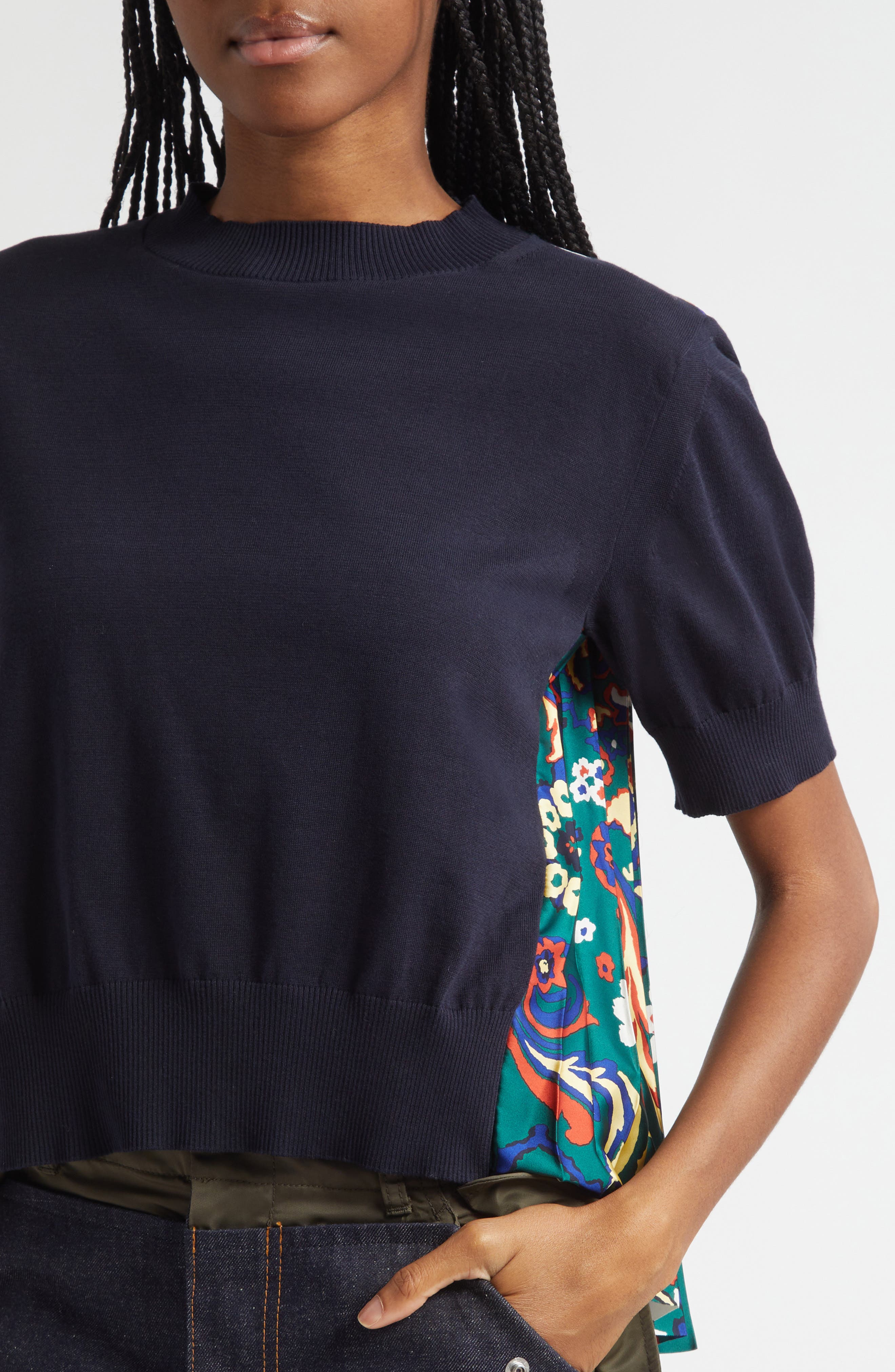 Sacai Short Sleeve Mixed Media Sweater_Navy/ Green