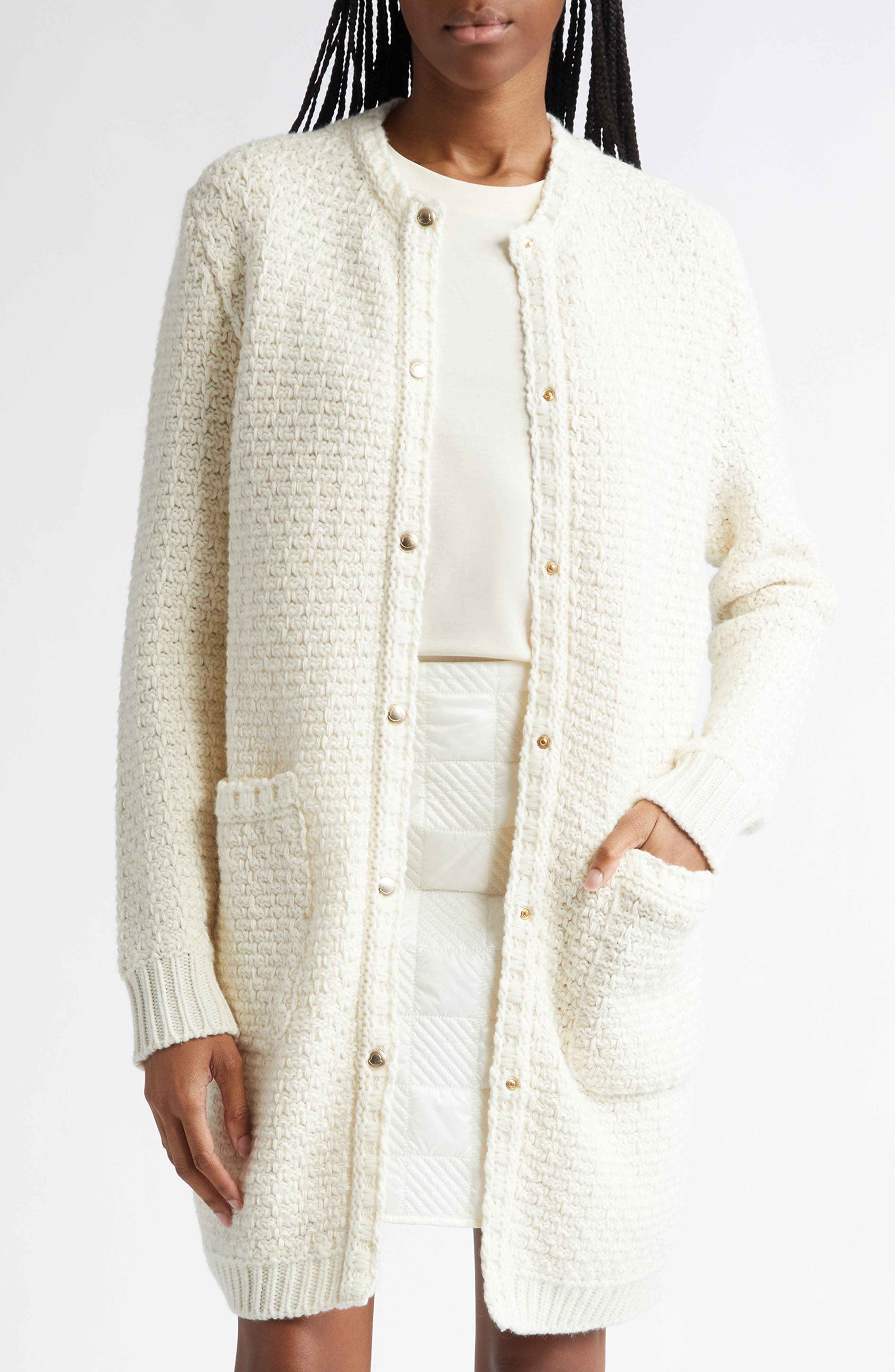Moncler Mixed Media Down Cardigan_Silk White