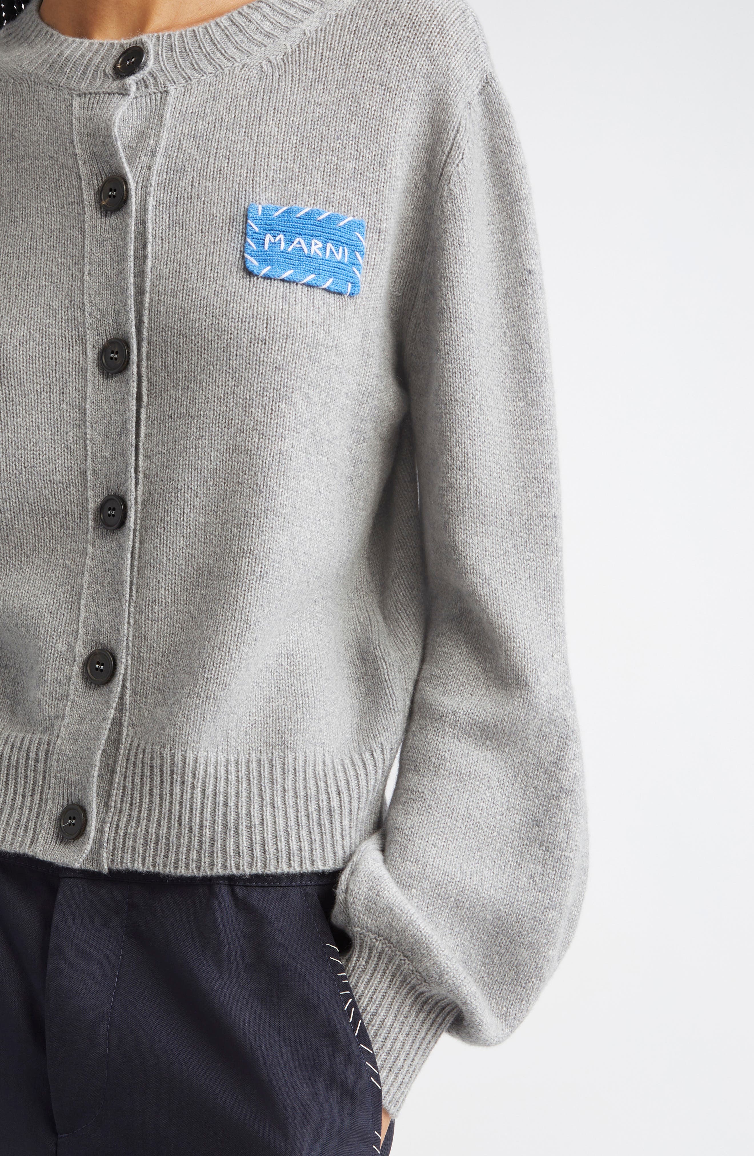 Marni Mending Logo Cashmere Cardigan_00N38 Inox