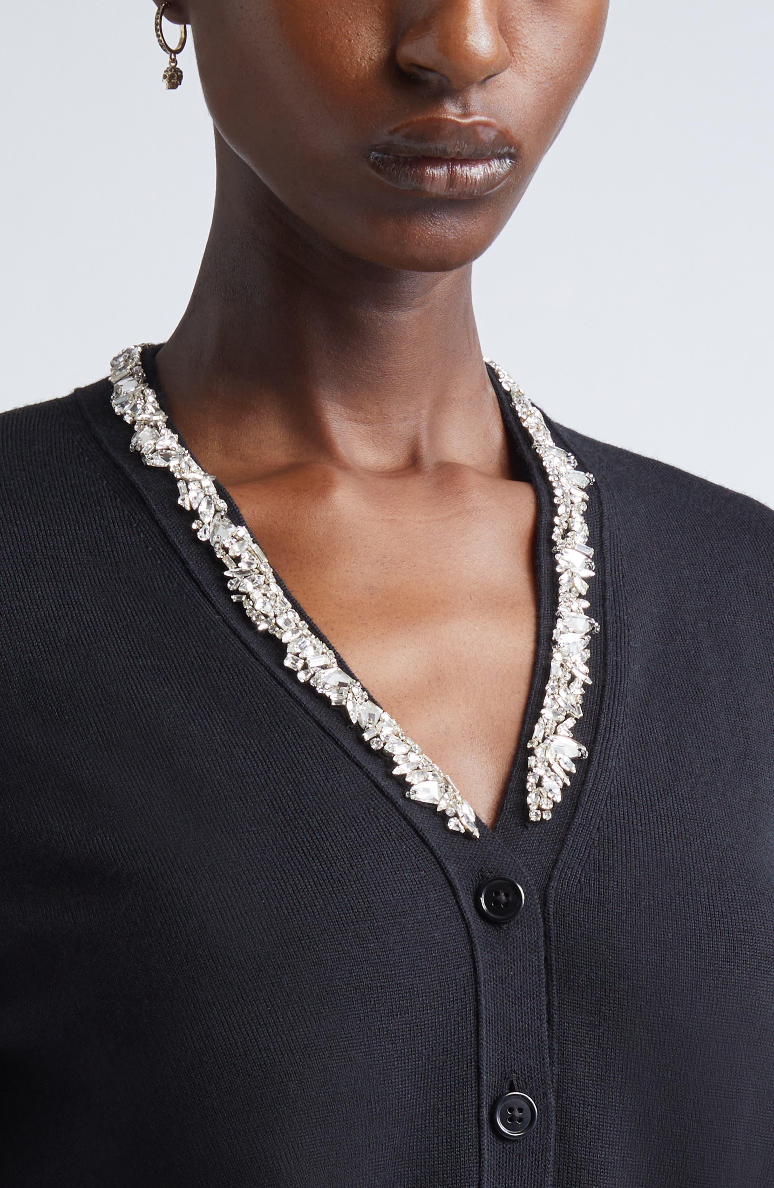 McQueen Crystal Stencil Wool Cardigan_Black/ Crystal