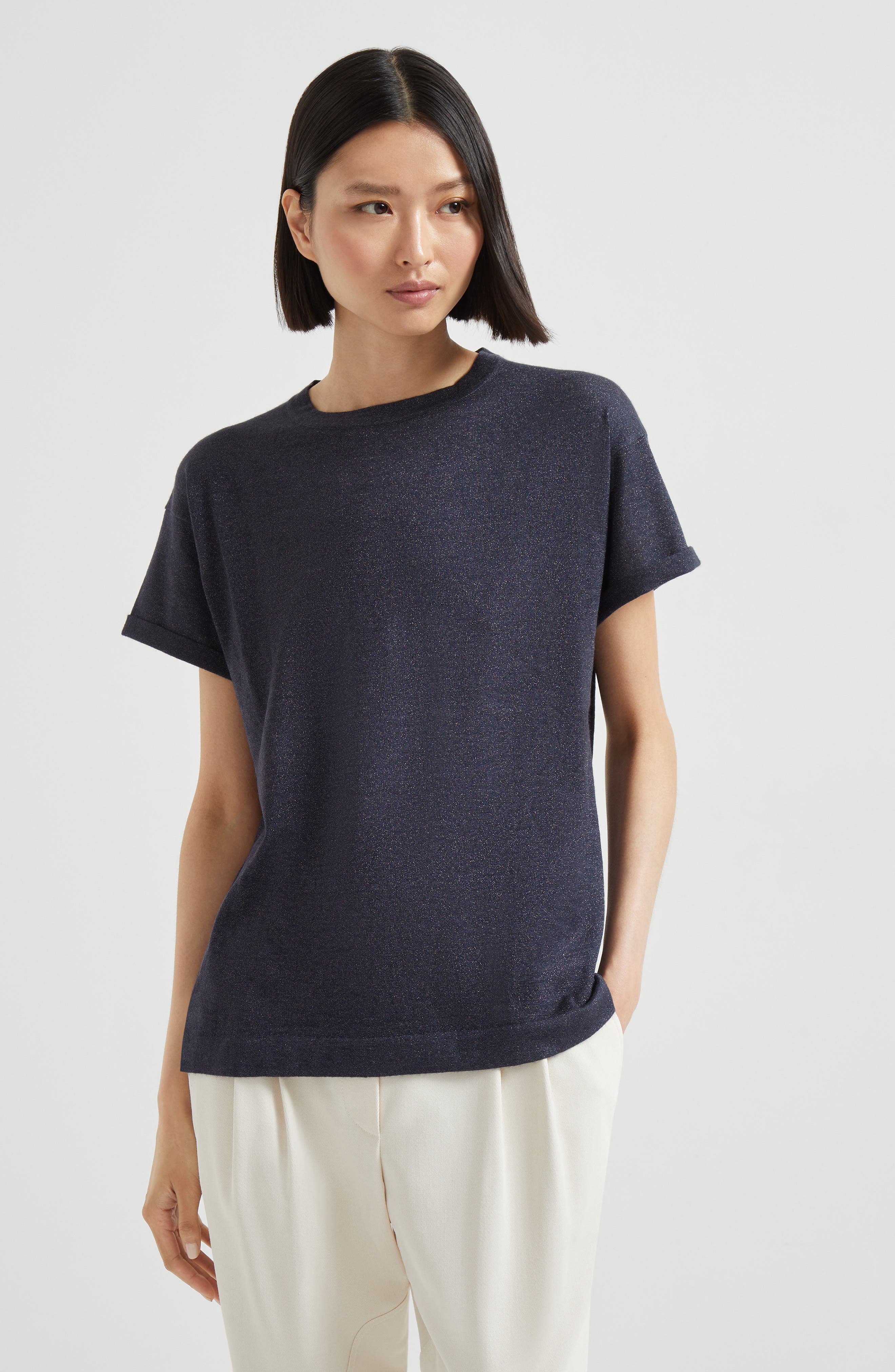 Brunello Cucinelli Cashmere and silk lightweight sweater_Navy Blue