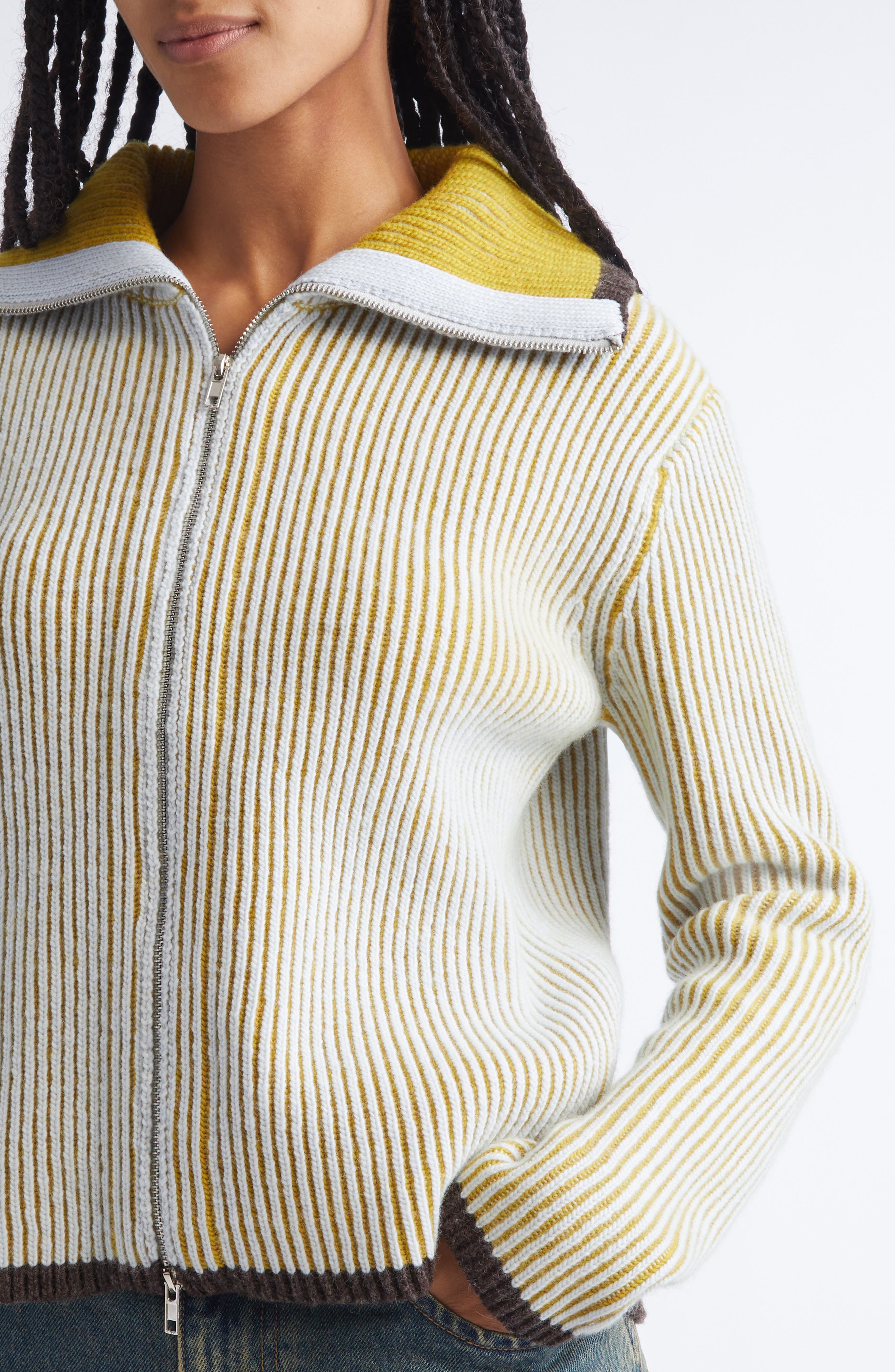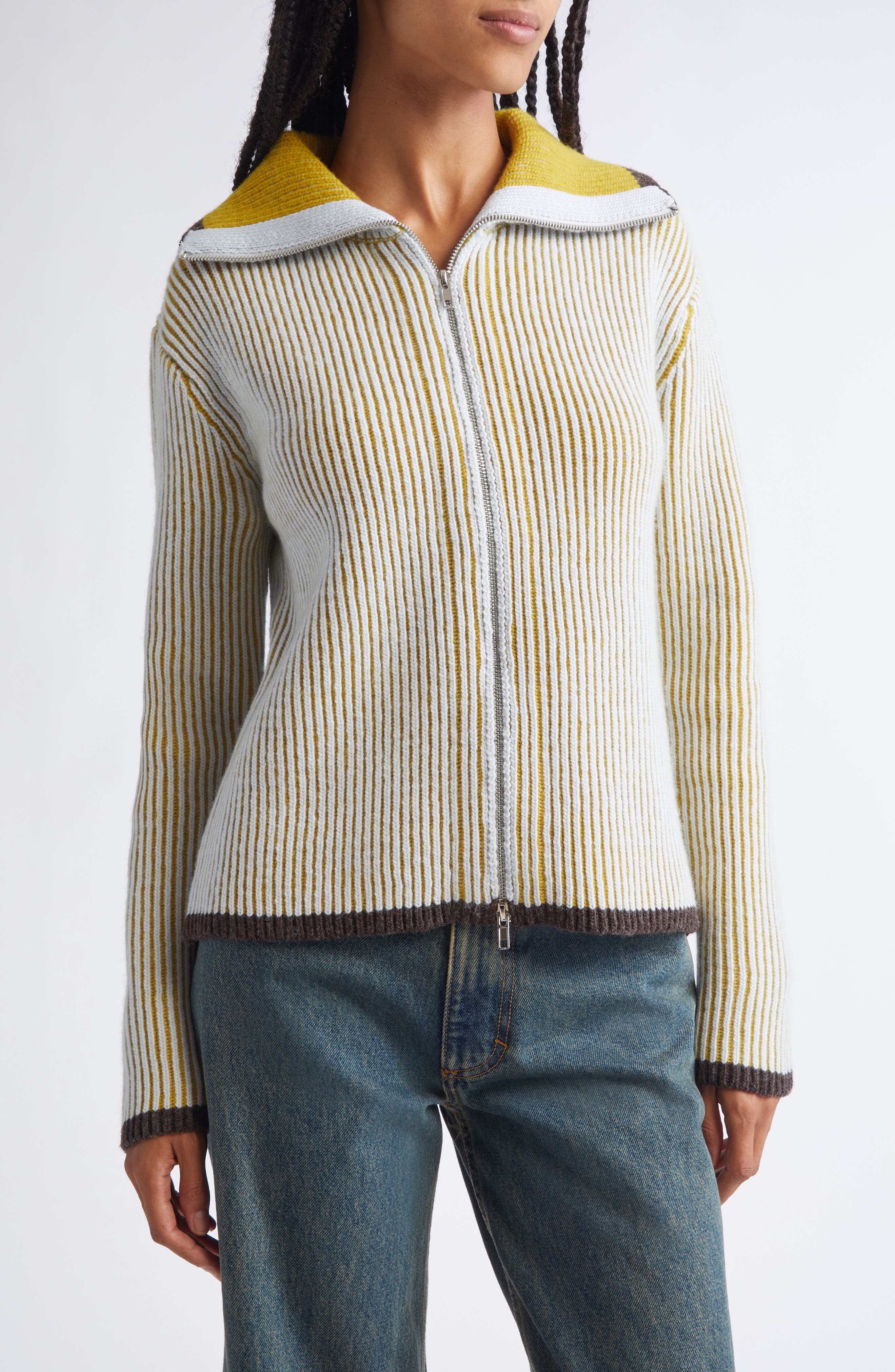 Eckhaus Latta Gender Inclusive Huddle Merino Wool Zip Cardigan_Cockatiel