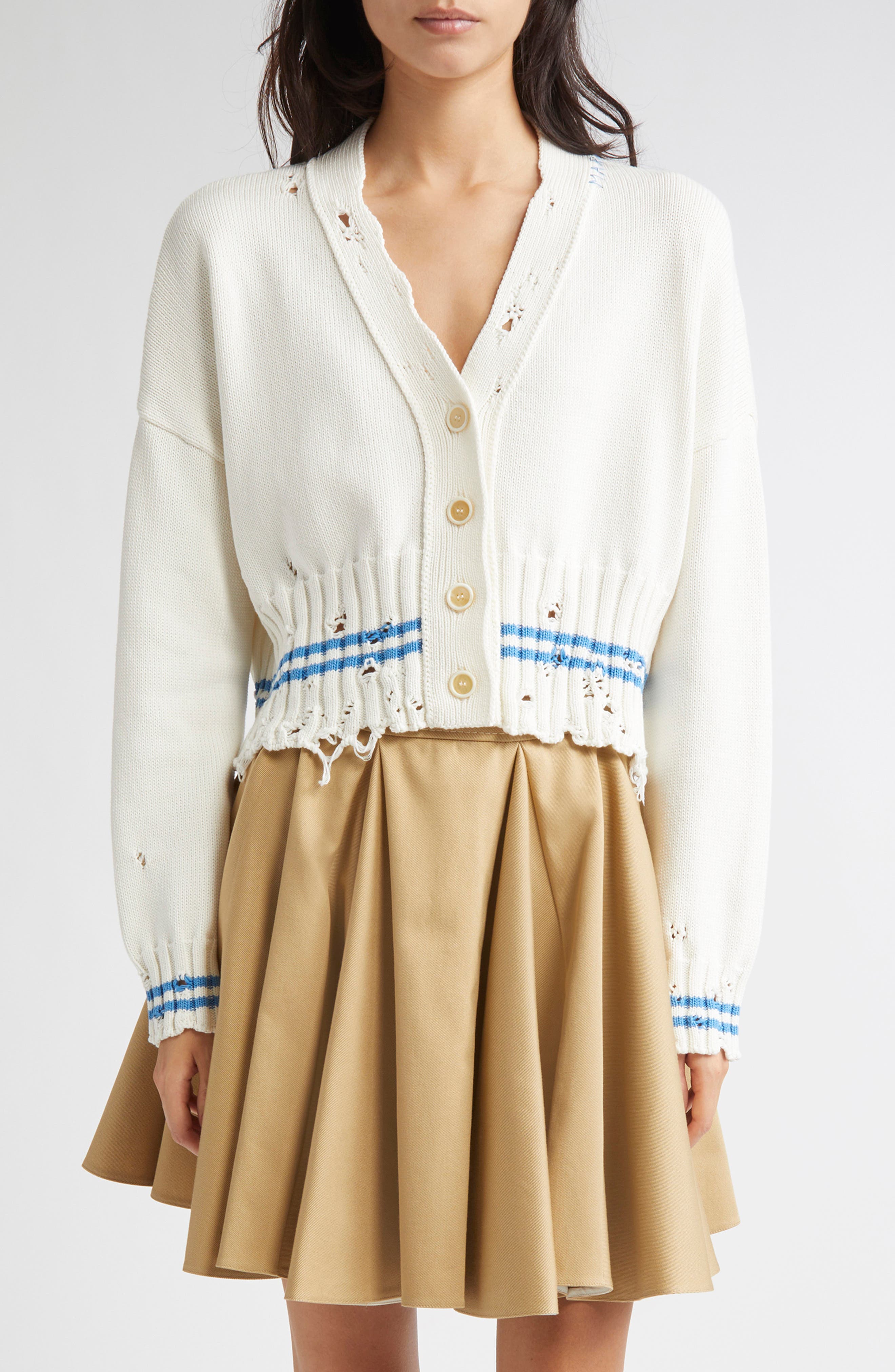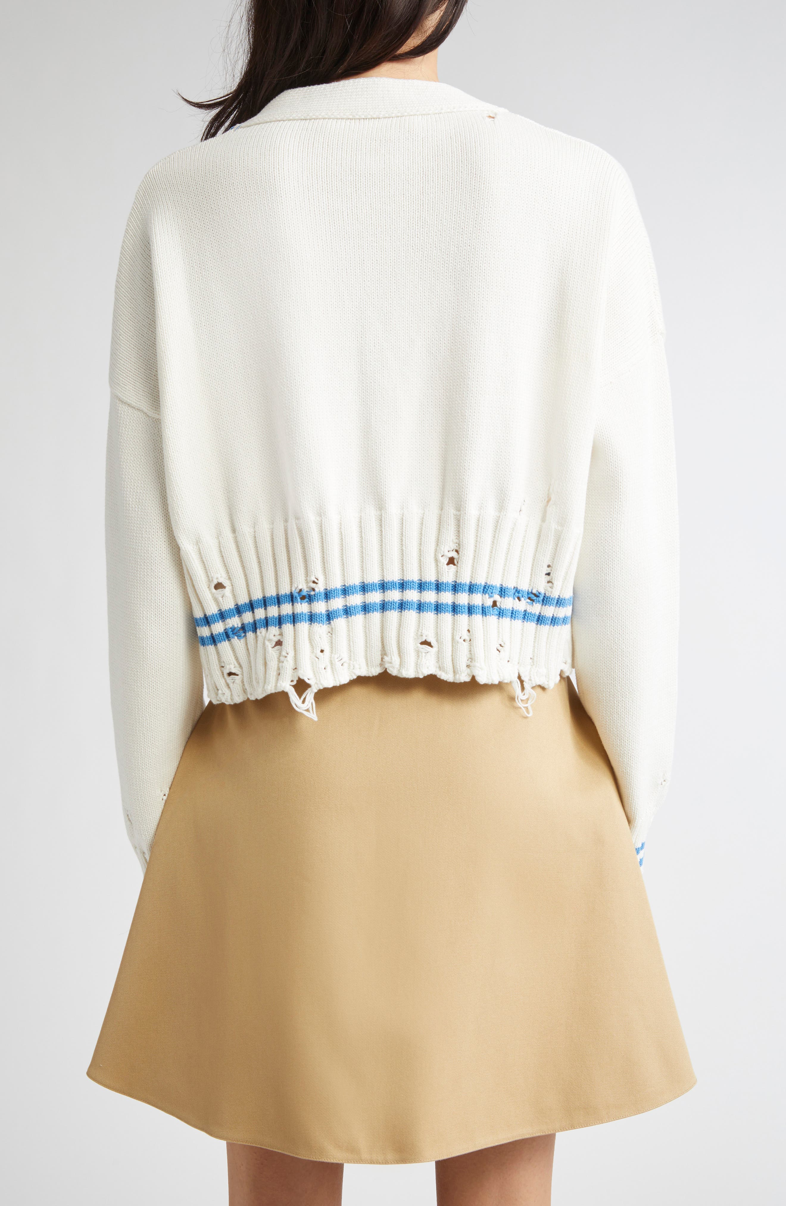 Marni Mending Logo Distressed Boxy Cotton Cardigan_V2w01 Lily White