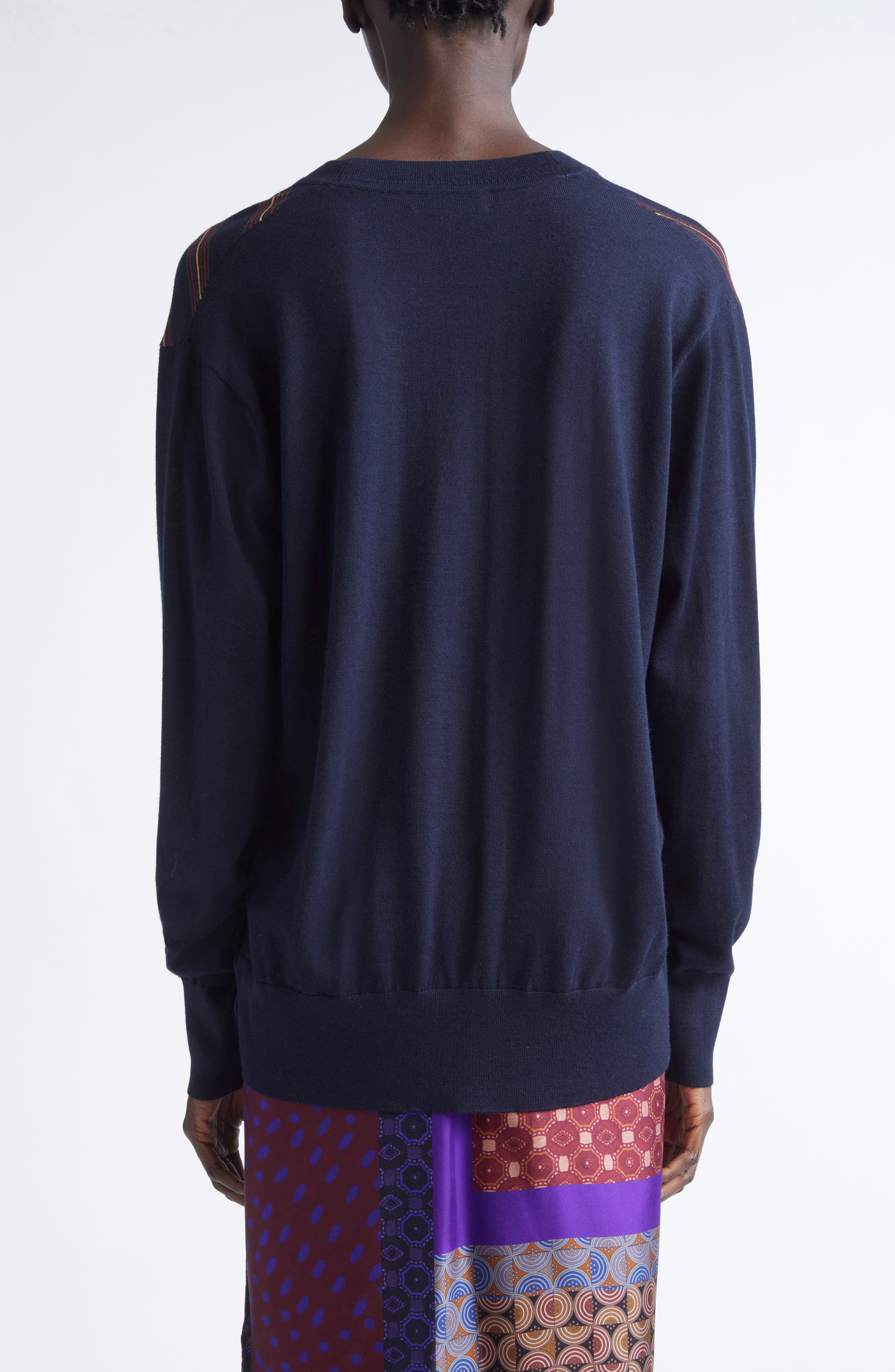 HasSearch:true searchTerm: Dries Van Noten Tishana Merino Wool V-Neck Sweater_Navy