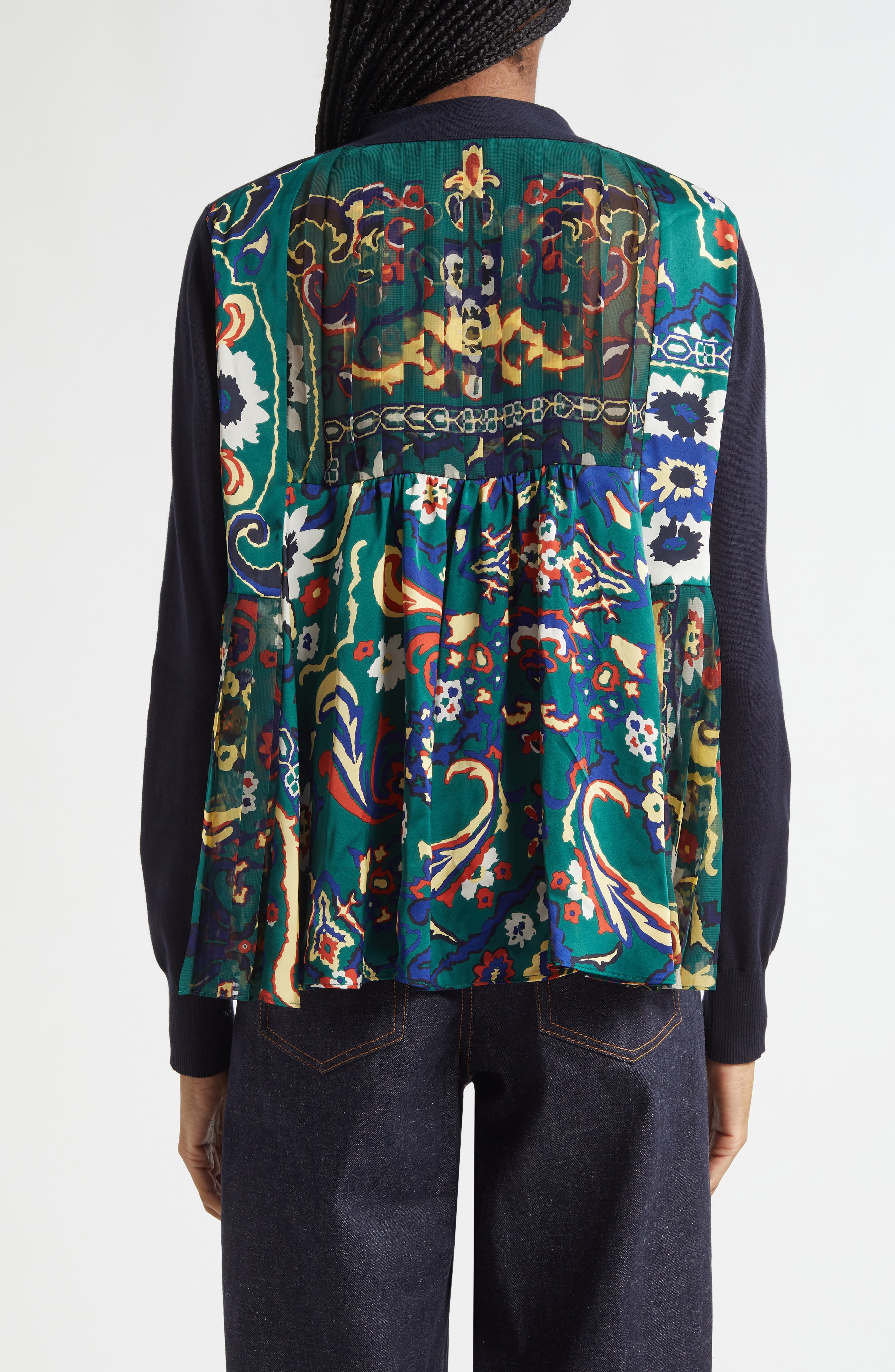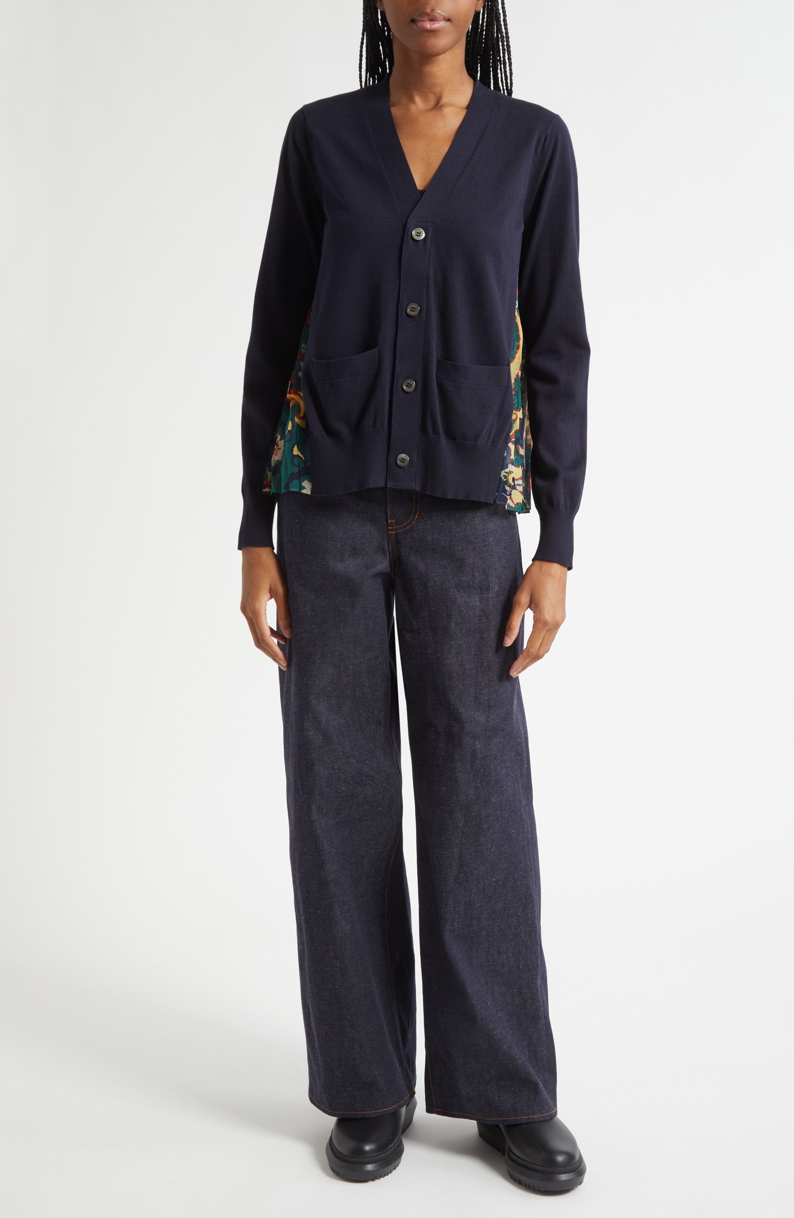 HasSearch:true searchTerm: Sacai Floral Panel Mixed Media Cardigan_Navy/ Green