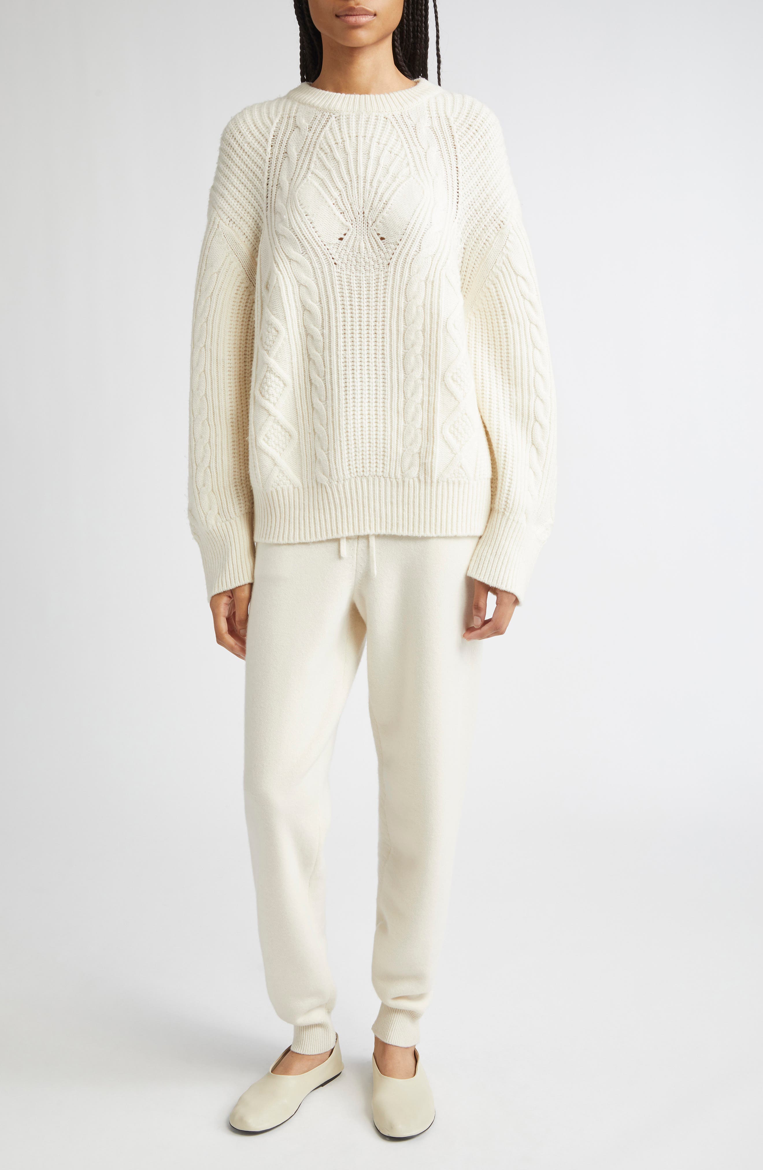 HasSearch:true searchTerm: LOULOU DE SAISON Silva Wool & Cashmere Cable Knit Sweater_Ivory