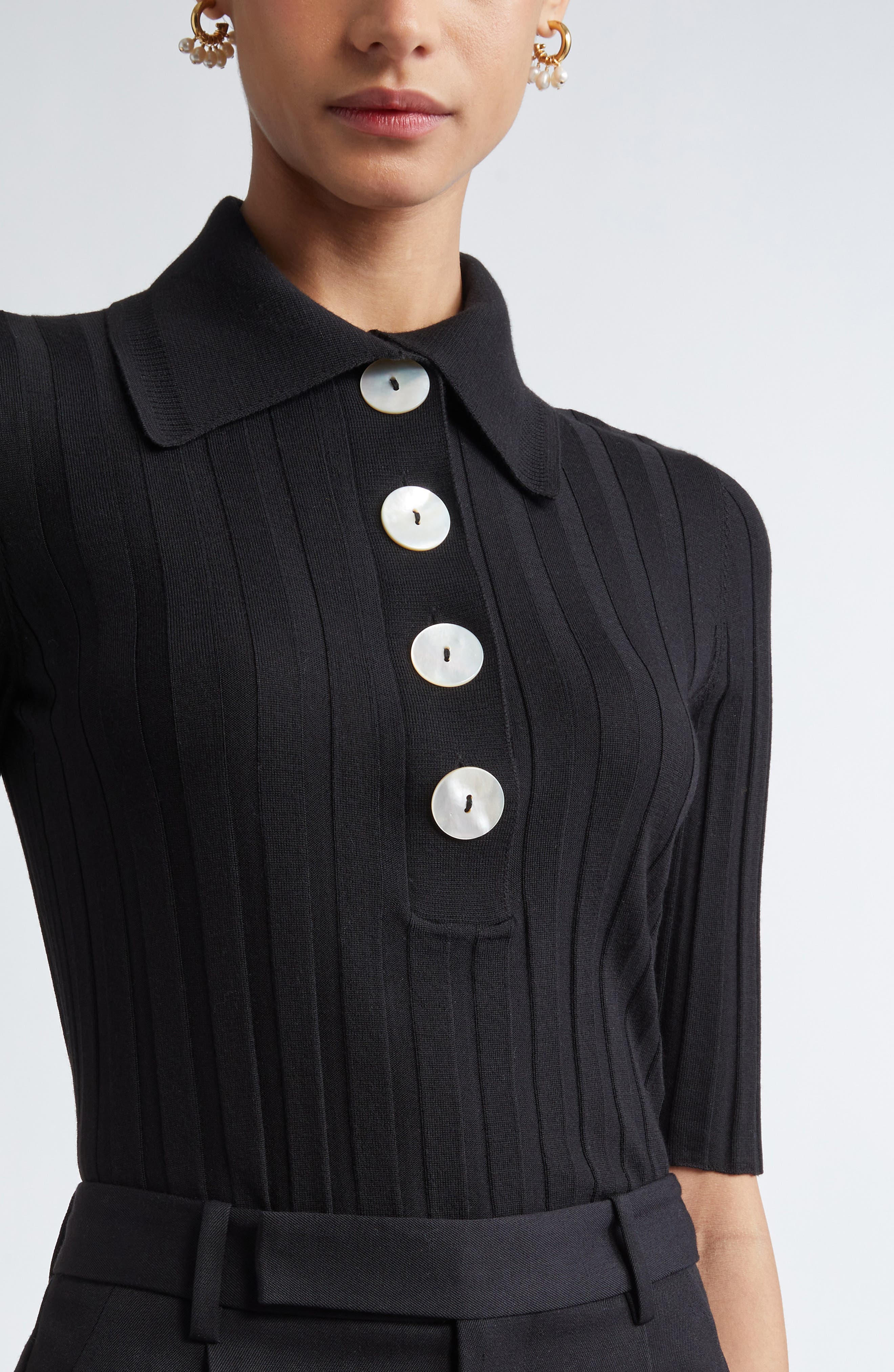 HasSearch:true searchTerm: NACKIYE Sugarman Rib Merino Wool Polo Sweater_Noir