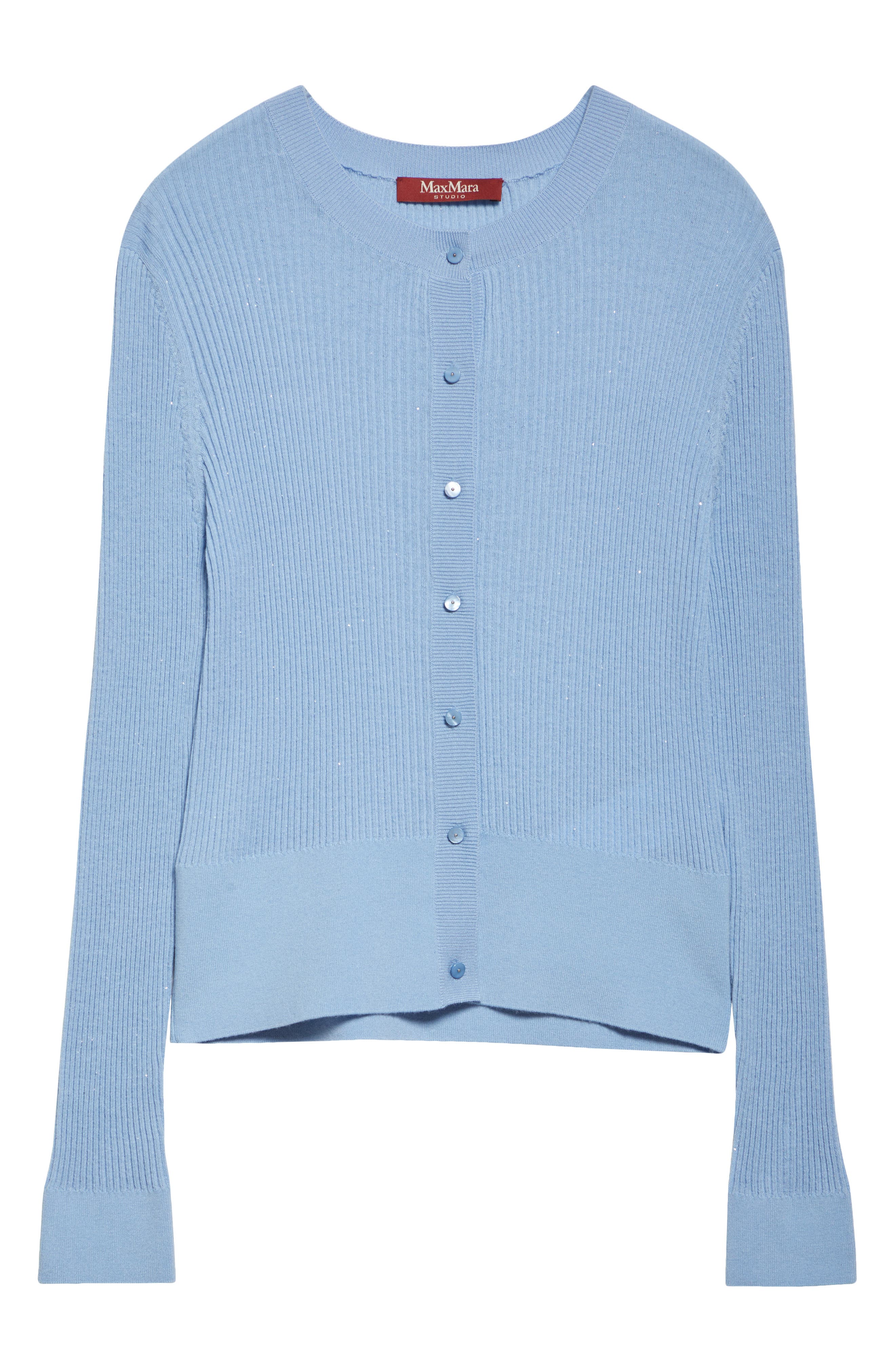 HasSearch:true searchTerm: Max Mara Ribera Sequin Rib Fitted Silk & Wool Cardigan_Light Blue