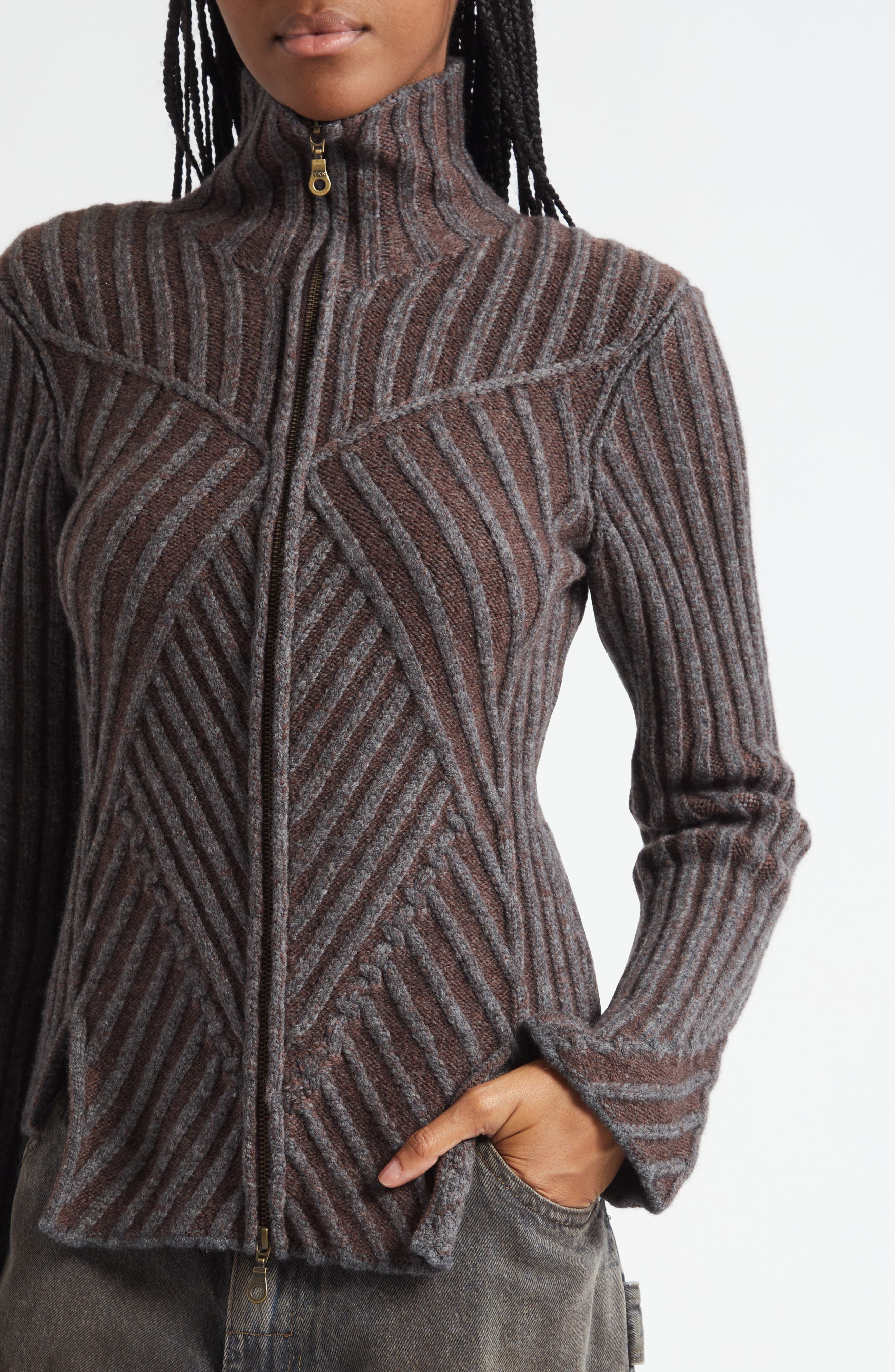 HasSearch:true searchTerm: Paolina Russo Warrior Rib Merino Wool Blend Cardigan_Grey/ Brown