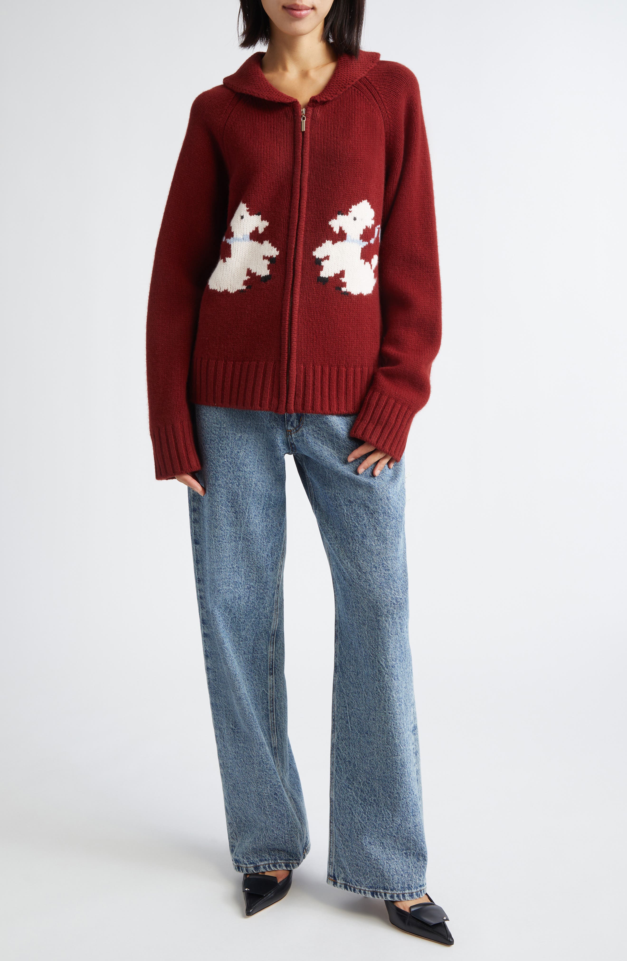 HasSearch:true searchTerm: Tanner Fletcher Gender Inclusive Wellington Poodle Full Zip Wool Cardigan_Oxblood