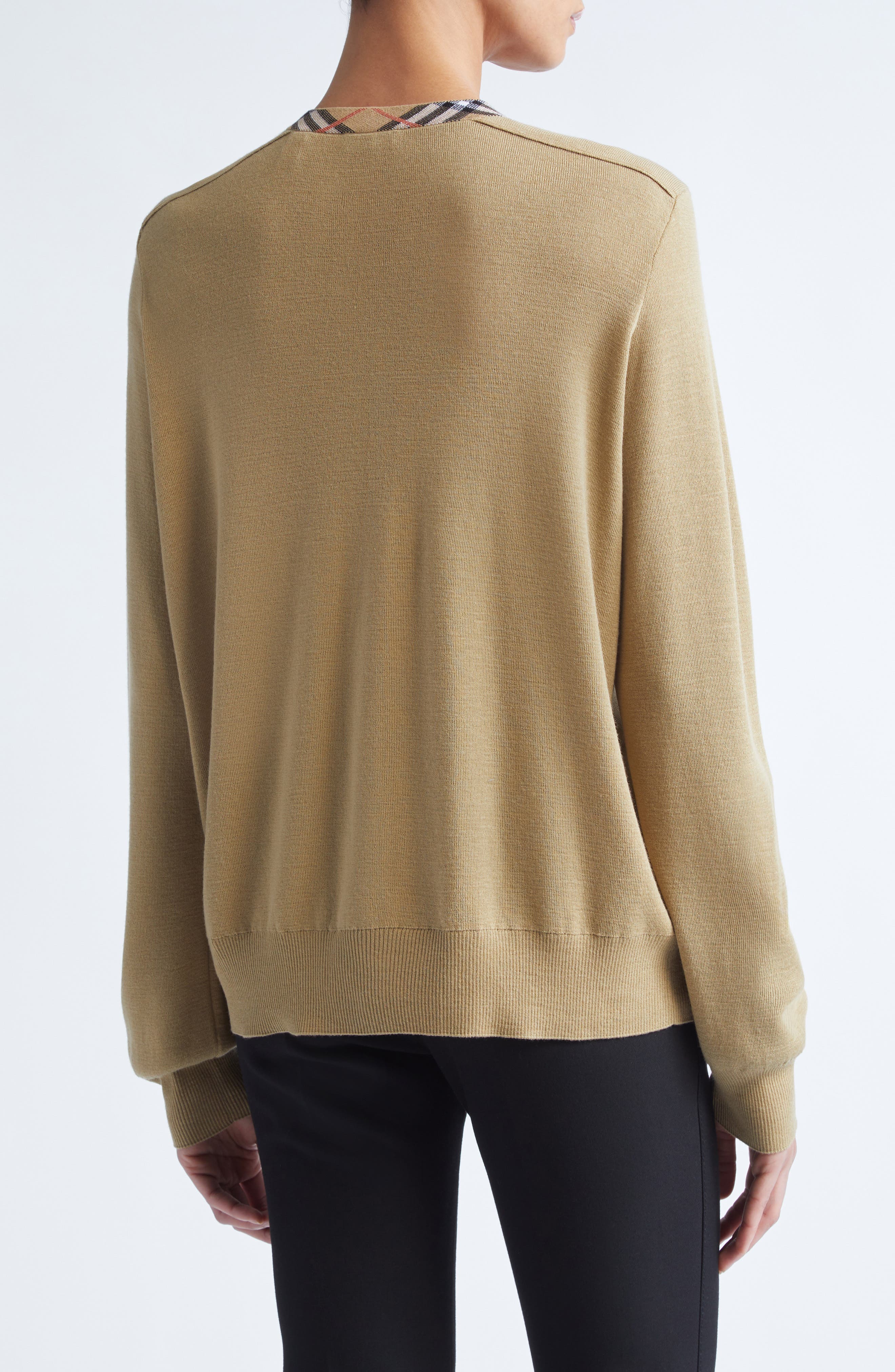 HasSearch:true searchTerm: Burberry Check Trim Wool Cardigan_Flax