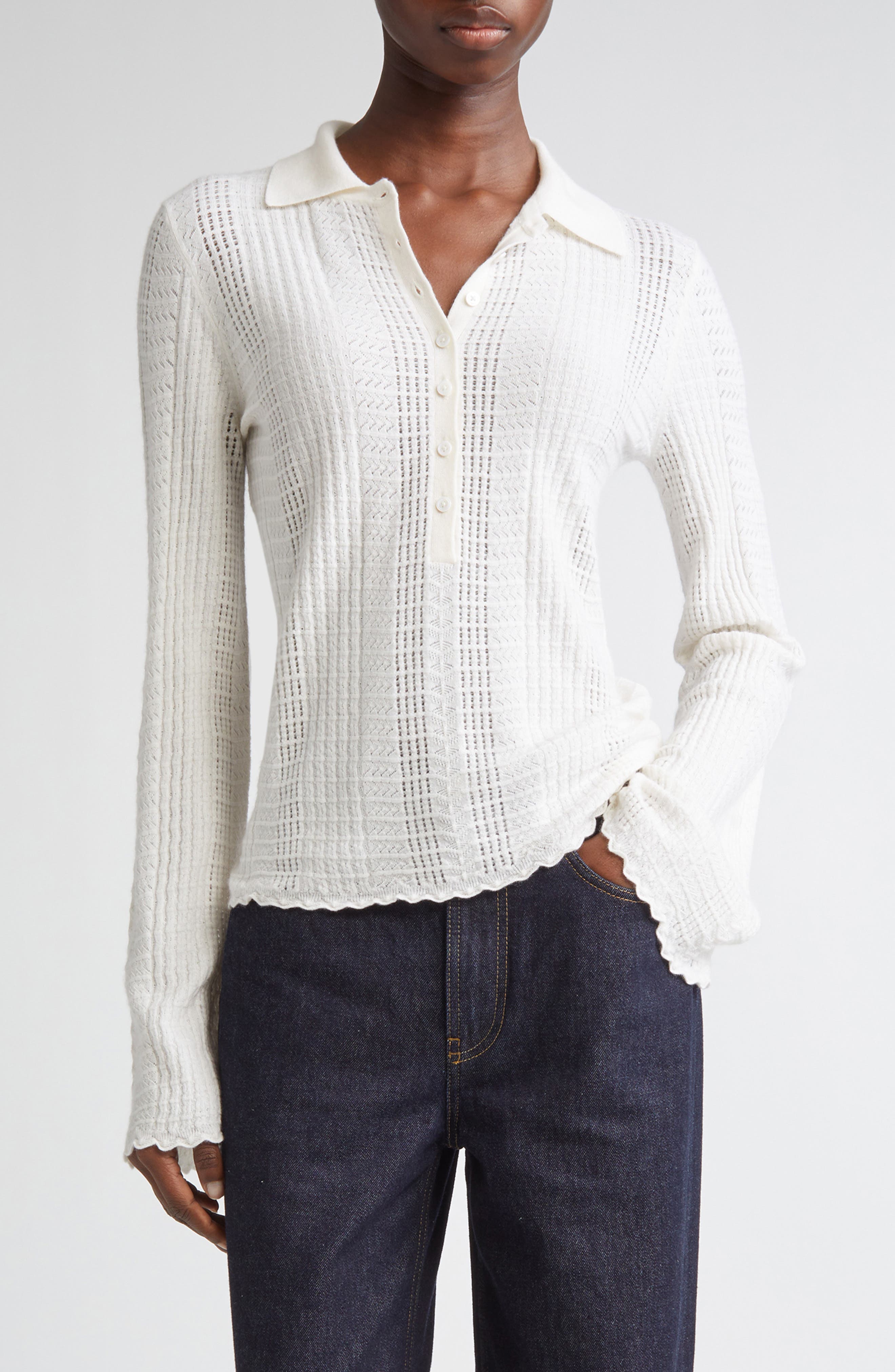 HasSearch:true searchTerm: LOULOU DE SAISON Tiha Long Sleeve Wool & Cashmere Polo Sweater_Ivory