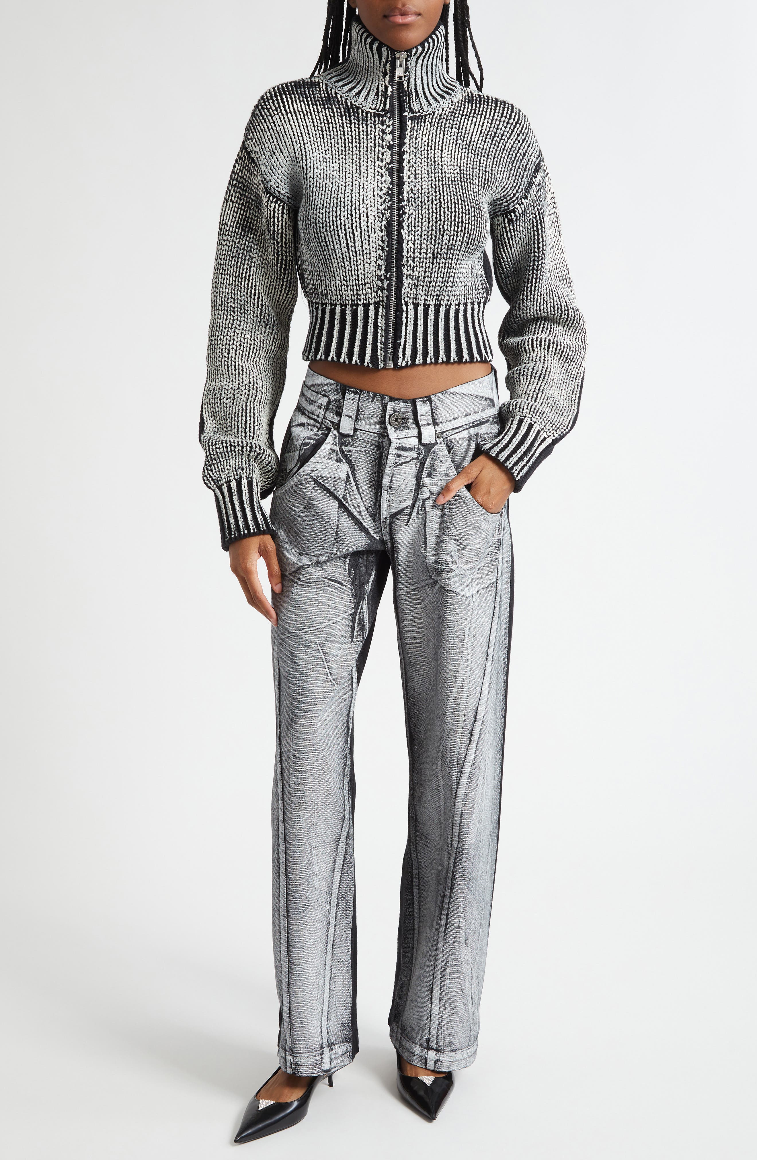 HasSearch:true searchTerm: Vaquera Zip Crop Cardigan_Black White 1