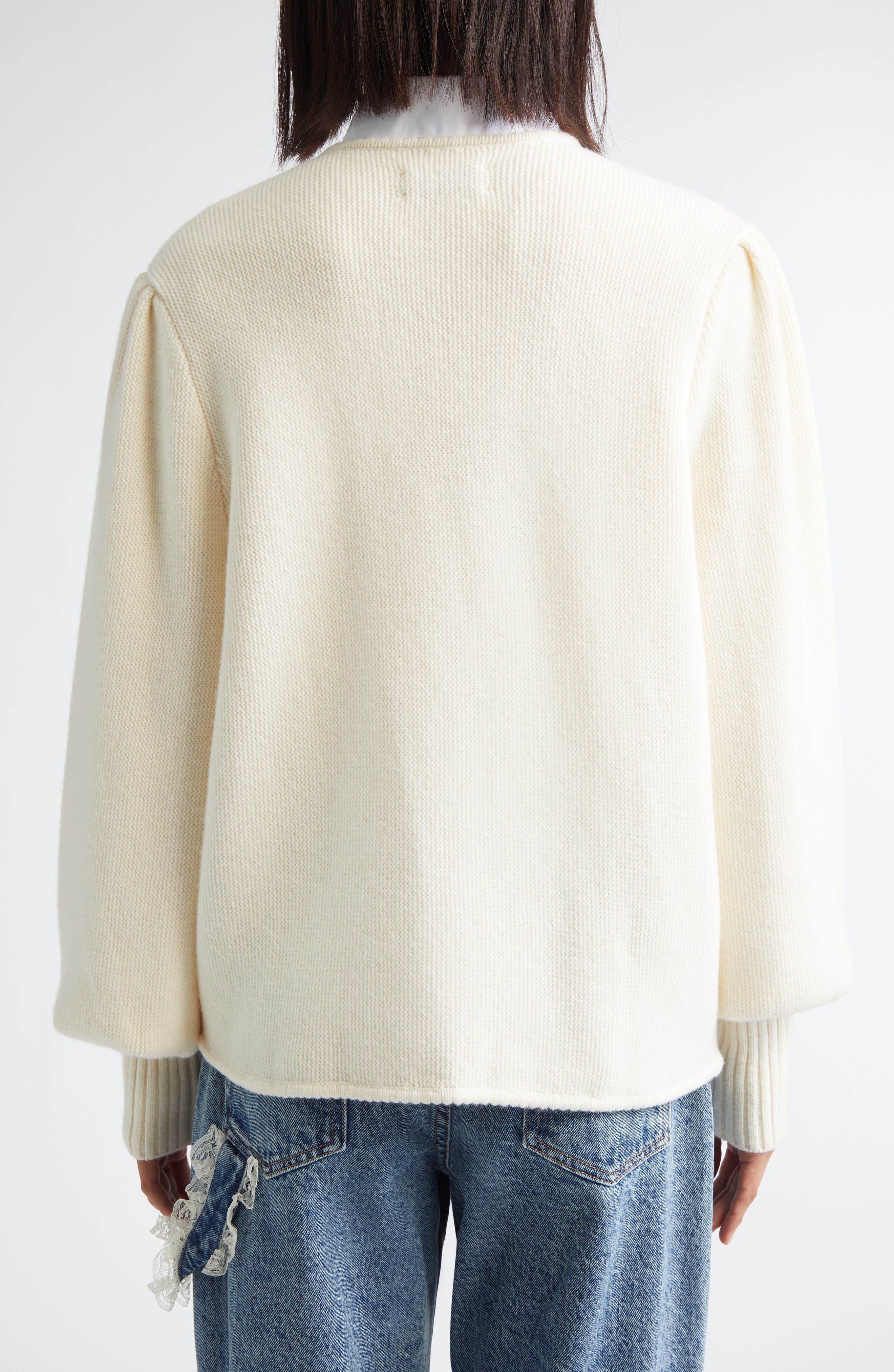HasSearch:true searchTerm: Tanner Fletcher Gender Inclusive Juliet Balloon Sleeve Wool Cardigan_Ivory