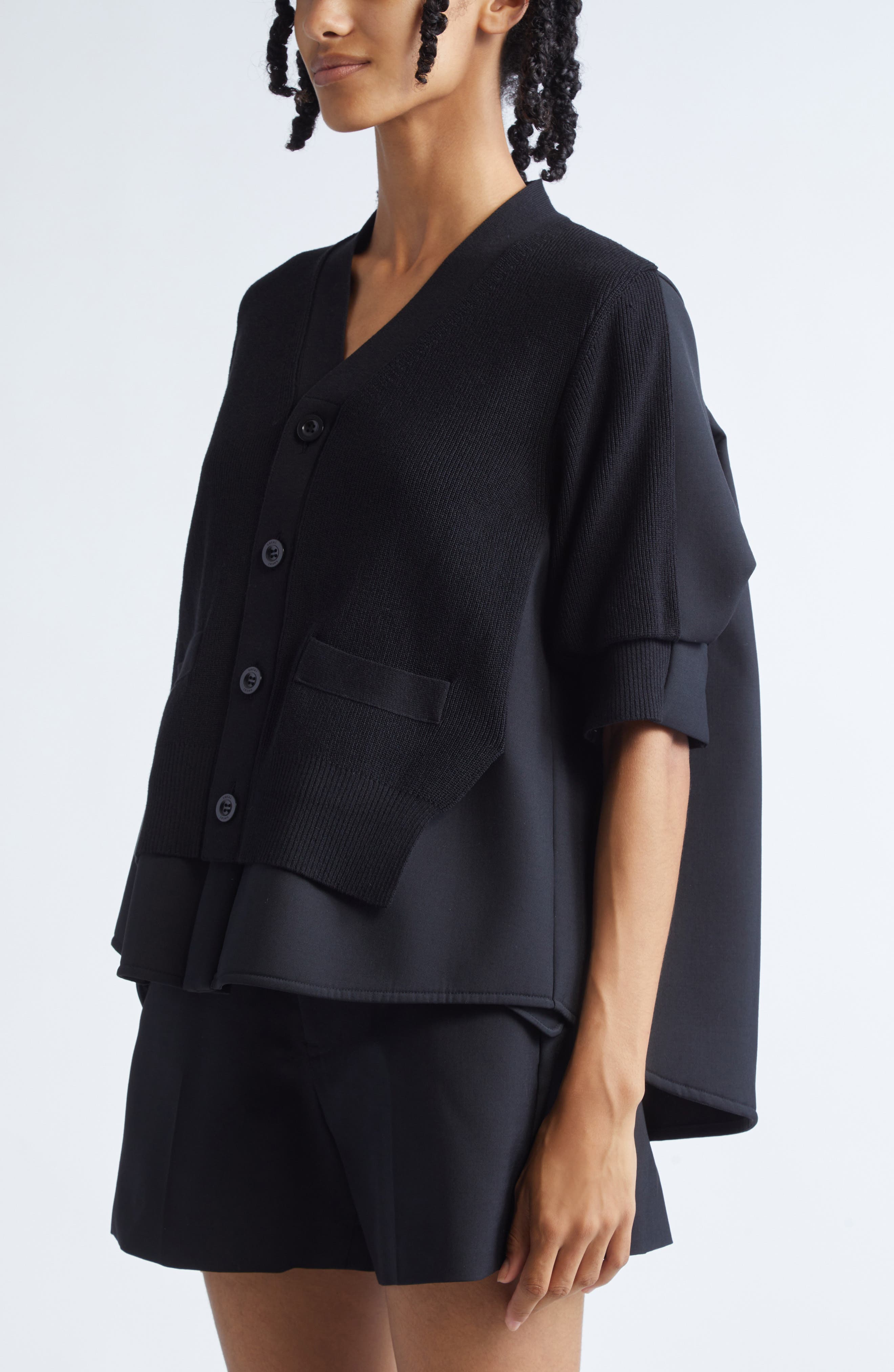 HasSearch:true searchTerm: Sacai Suiting Mixed Media Cardigan_Black