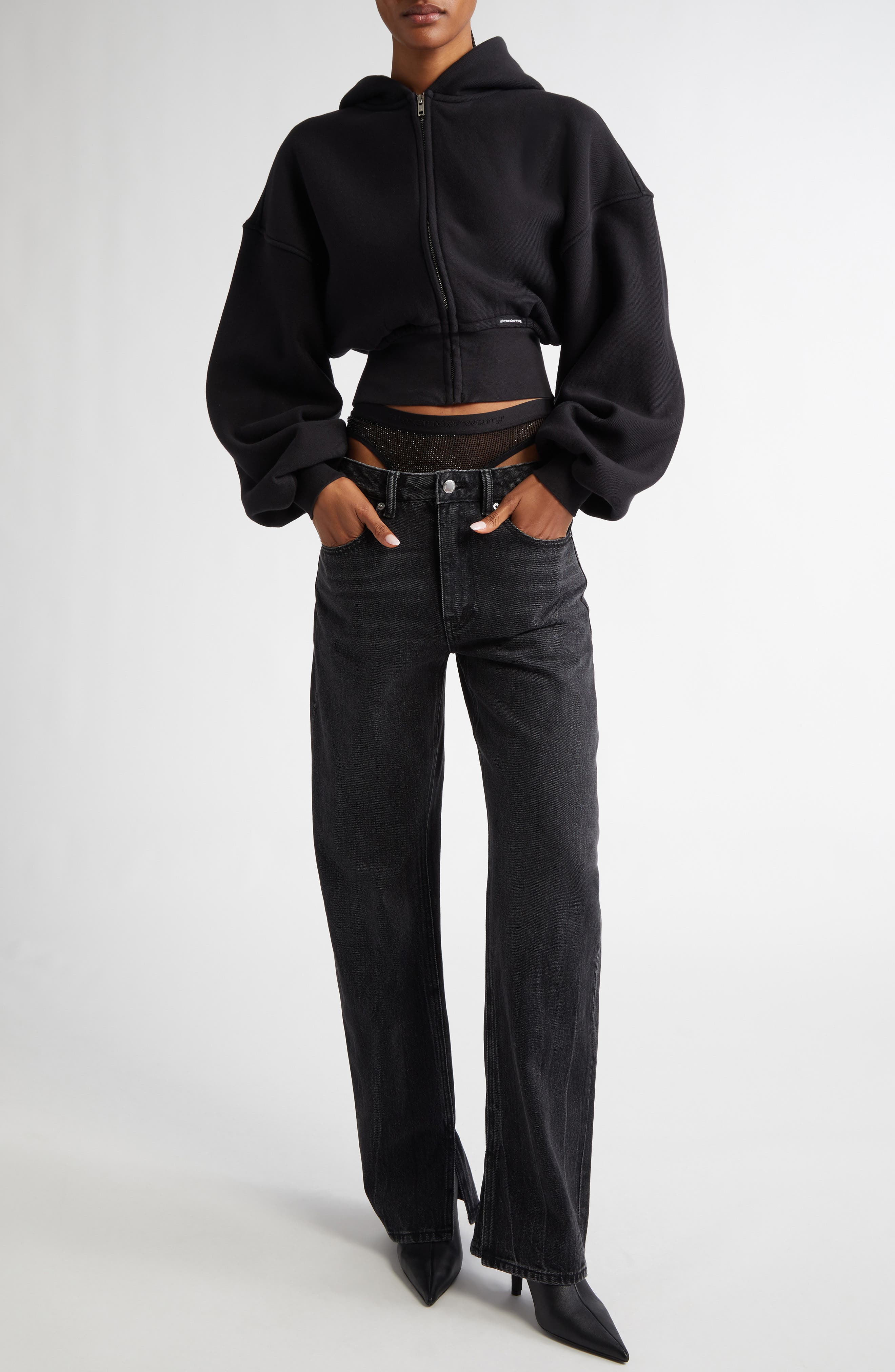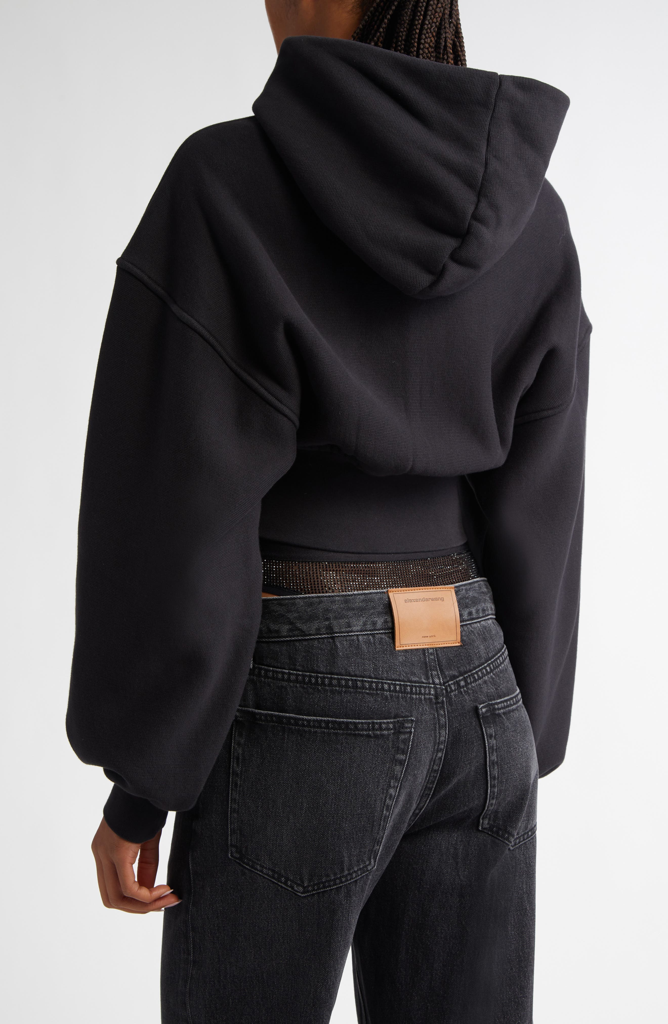 HasSearch:true searchTerm: Alexander Wang Crop Front Zip Cotton Hoodie_020A Faded Black