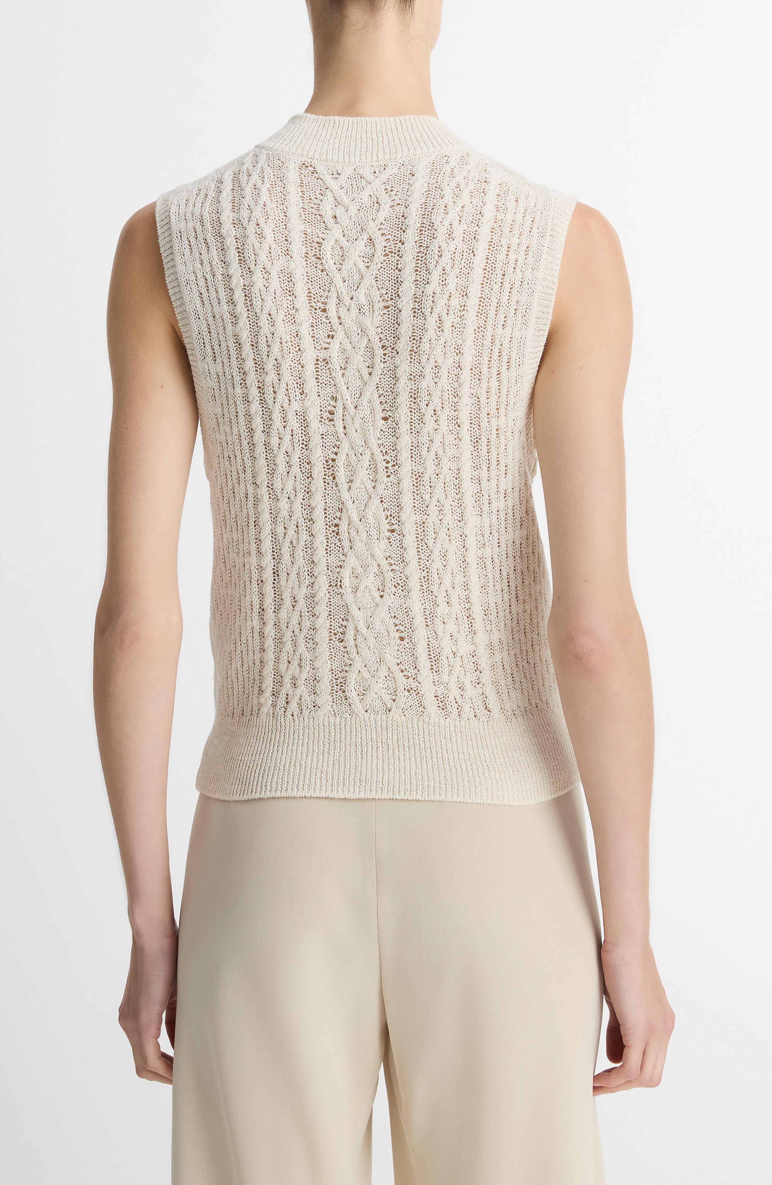 HasSearch:true searchTerm: Vince Mock Neck Cable Stitch Sweater Vest_Off White/Gold Cliff