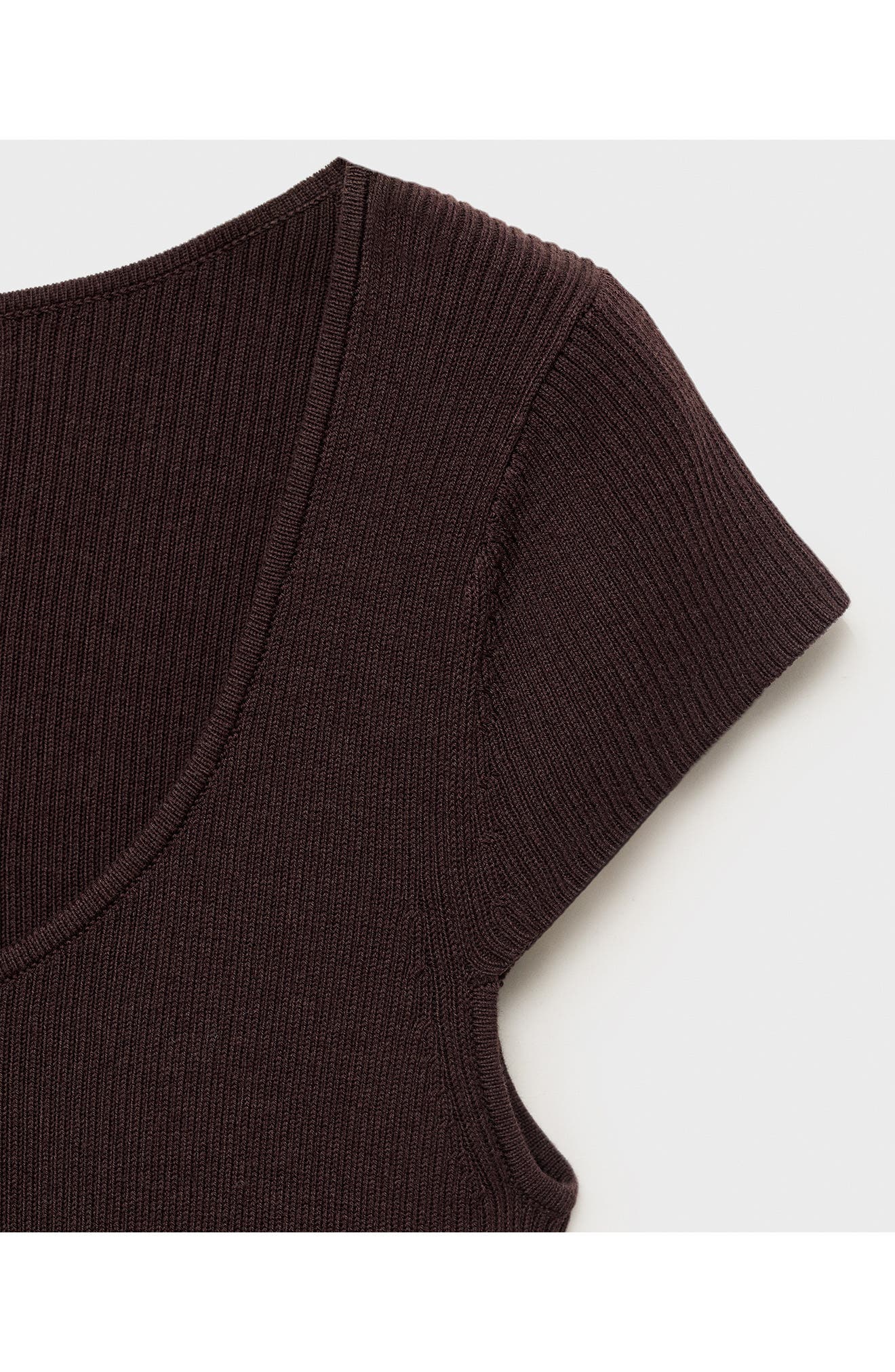 HasSearch:true searchTerm: MANGO Short Sleeve Rib Sweater_Chocolate