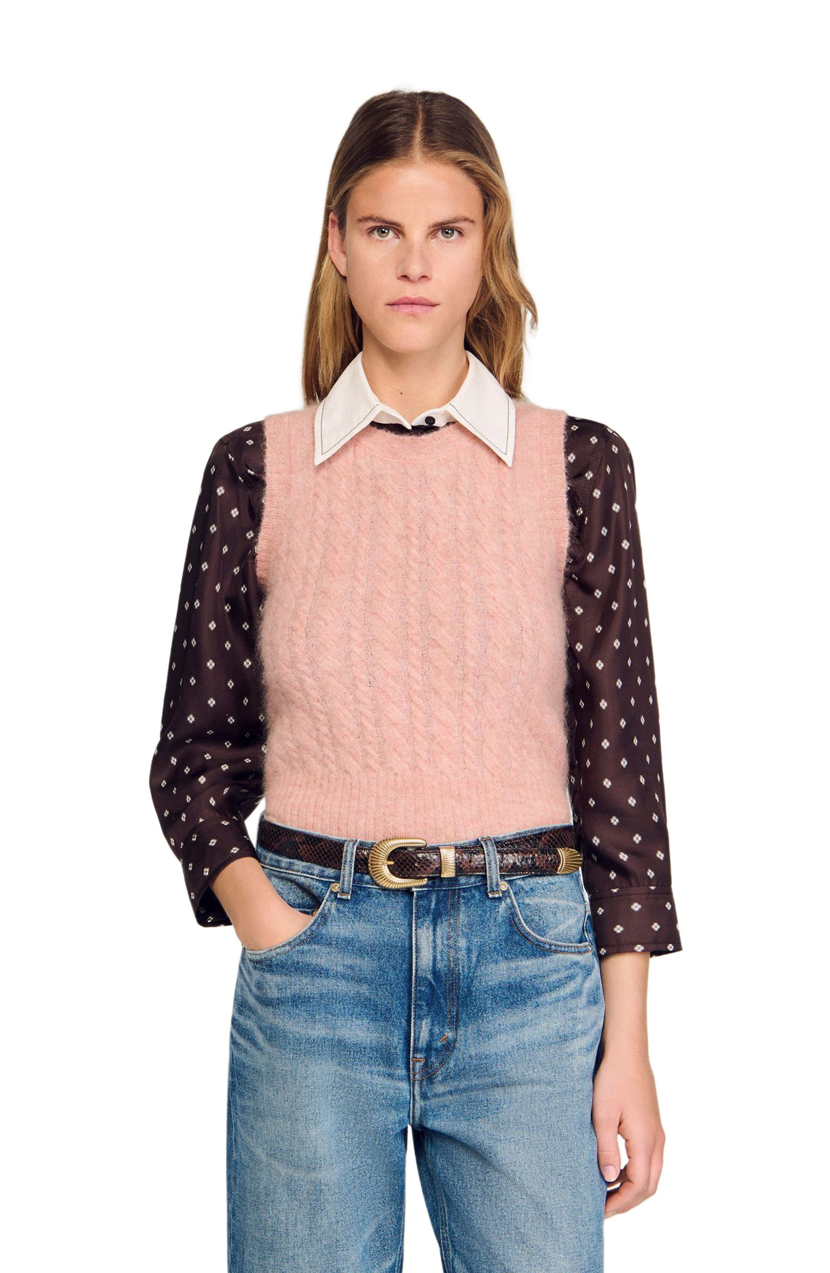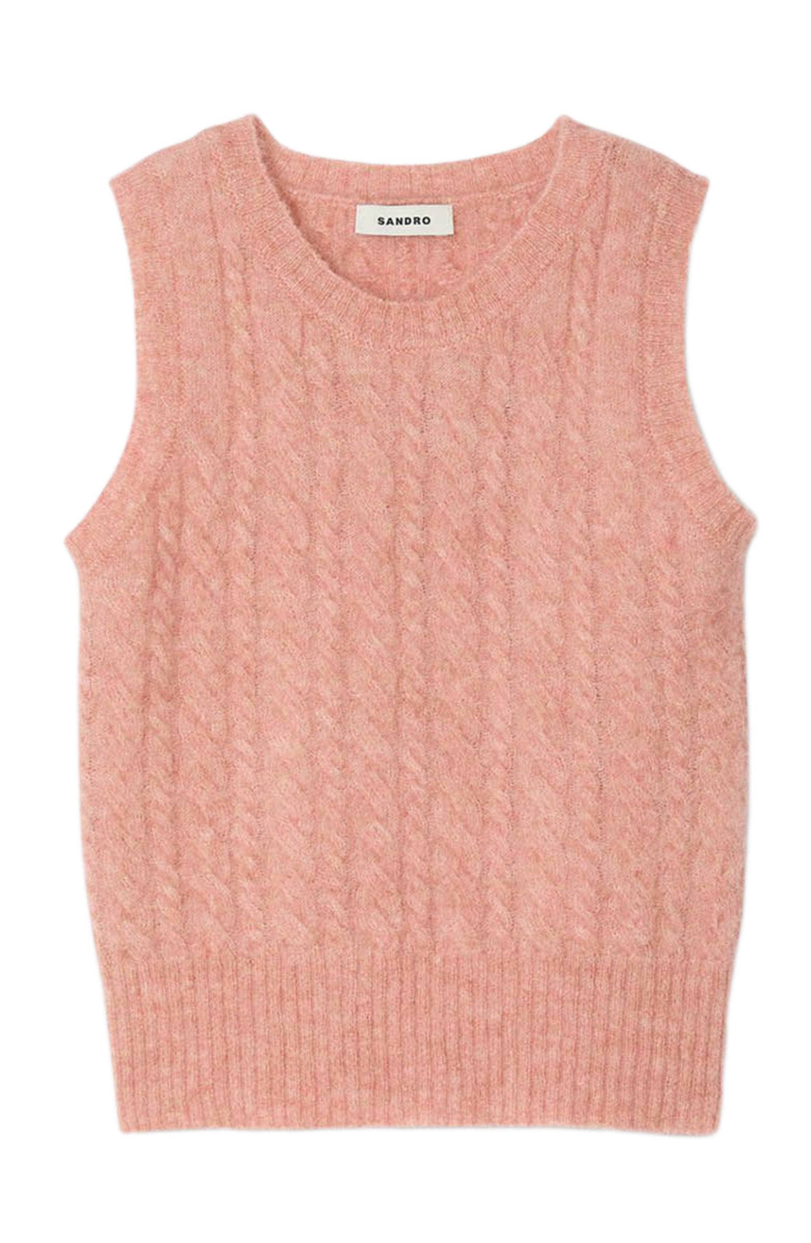 HasSearch:true searchTerm: SANDRO Sleeveless brushed cable knit sweater_Poudre Pink