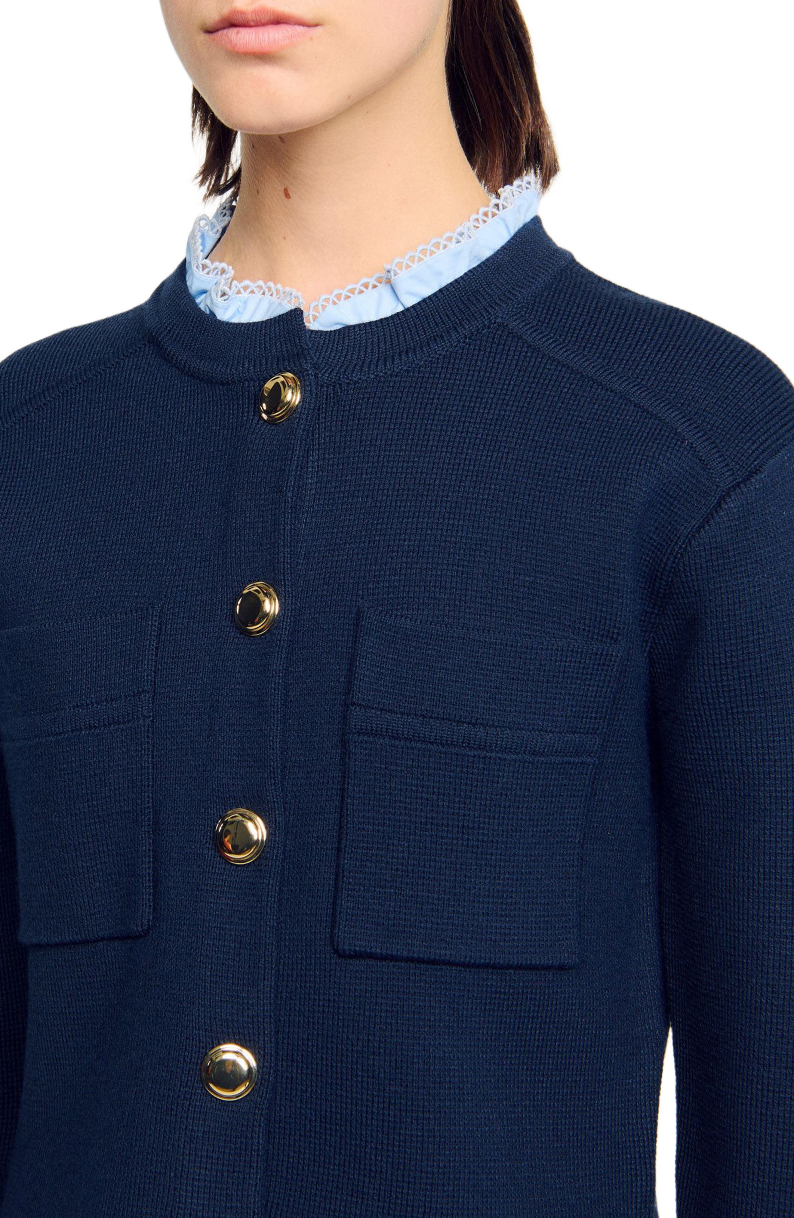 HasSearch:true searchTerm: SANDRO Cardigan with detachable ruffle collar_Navy Blue