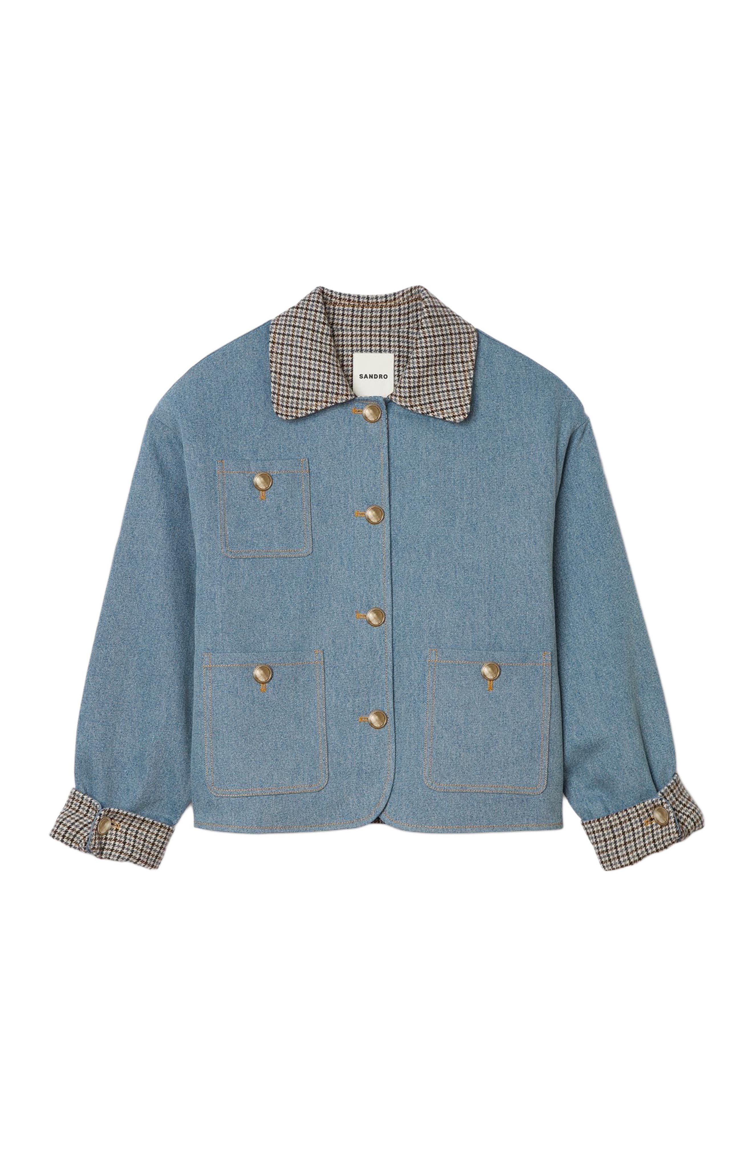 HasSearch:true searchTerm: SANDRO Plaid collar denim jacket_Blue Jean
