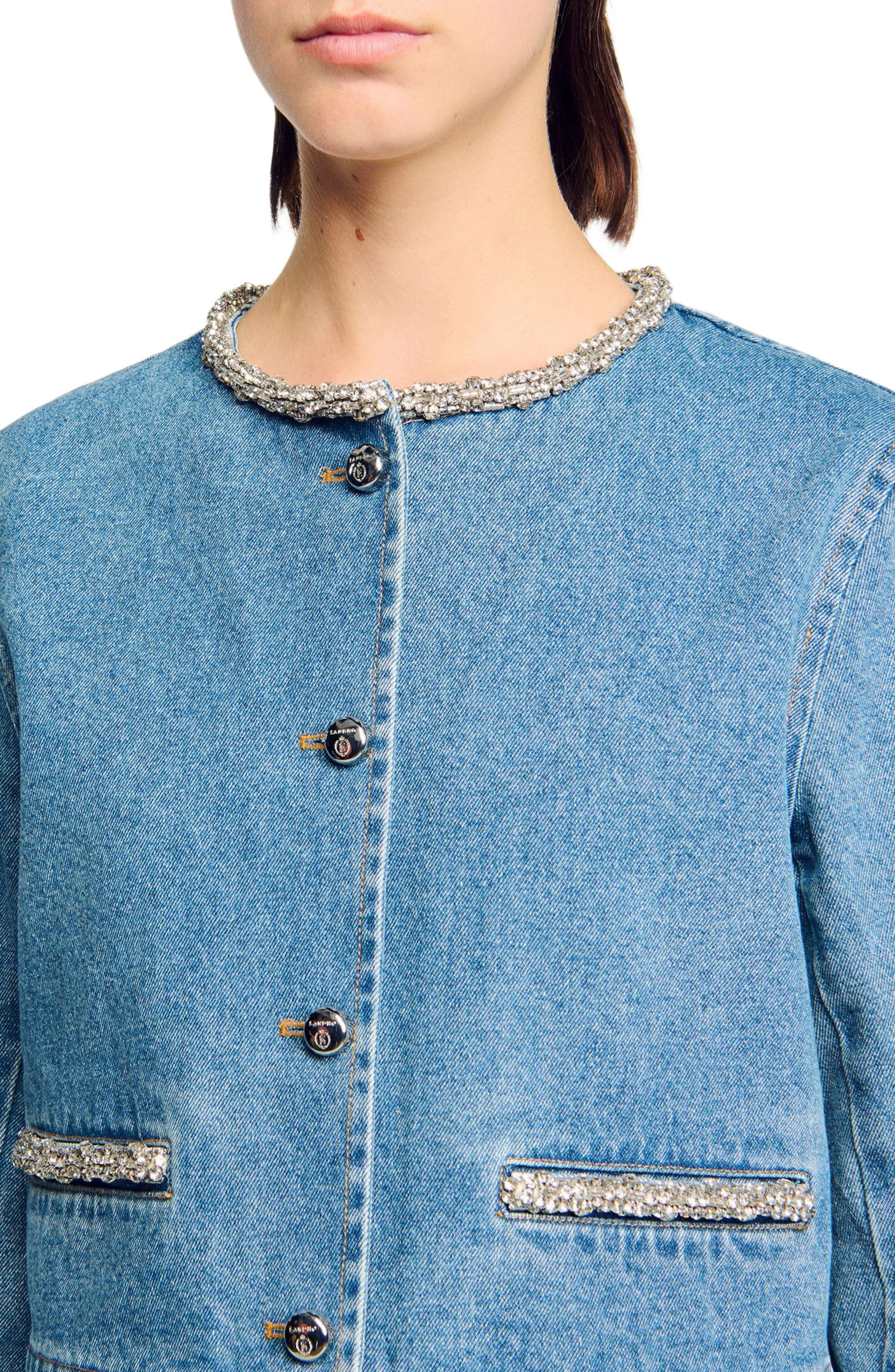 HasSearch:true searchTerm: SANDRO Rhinestone denim jacket_Blue Jean