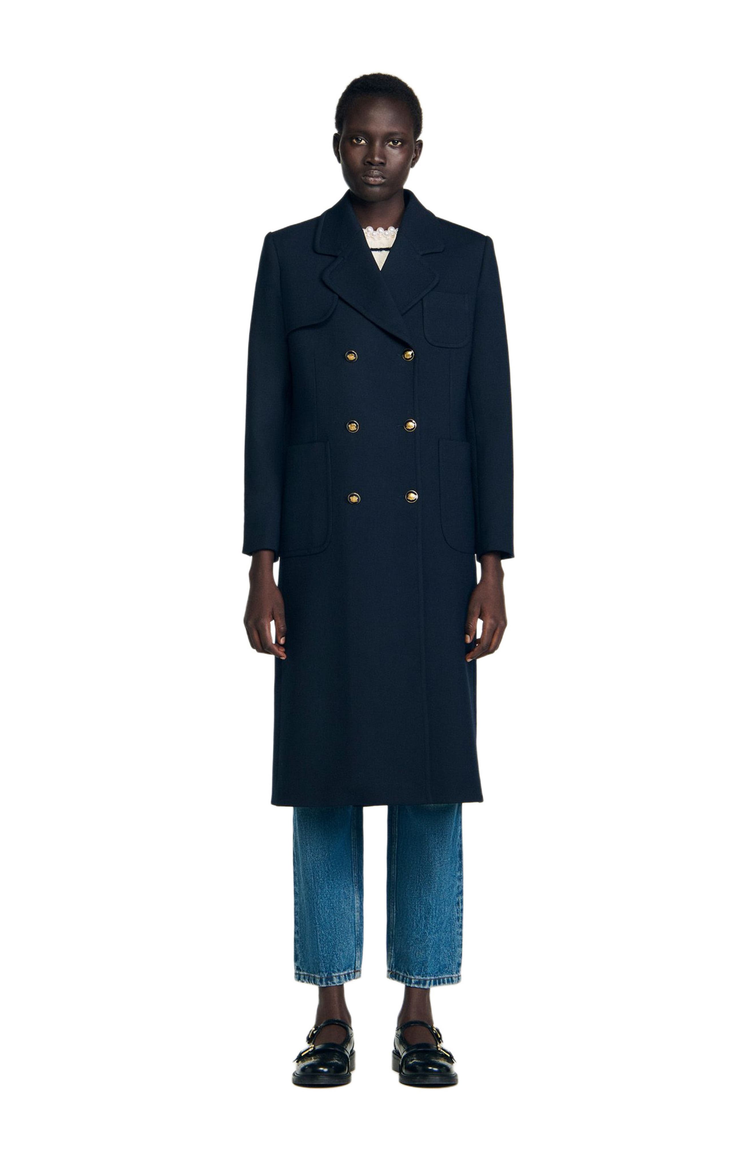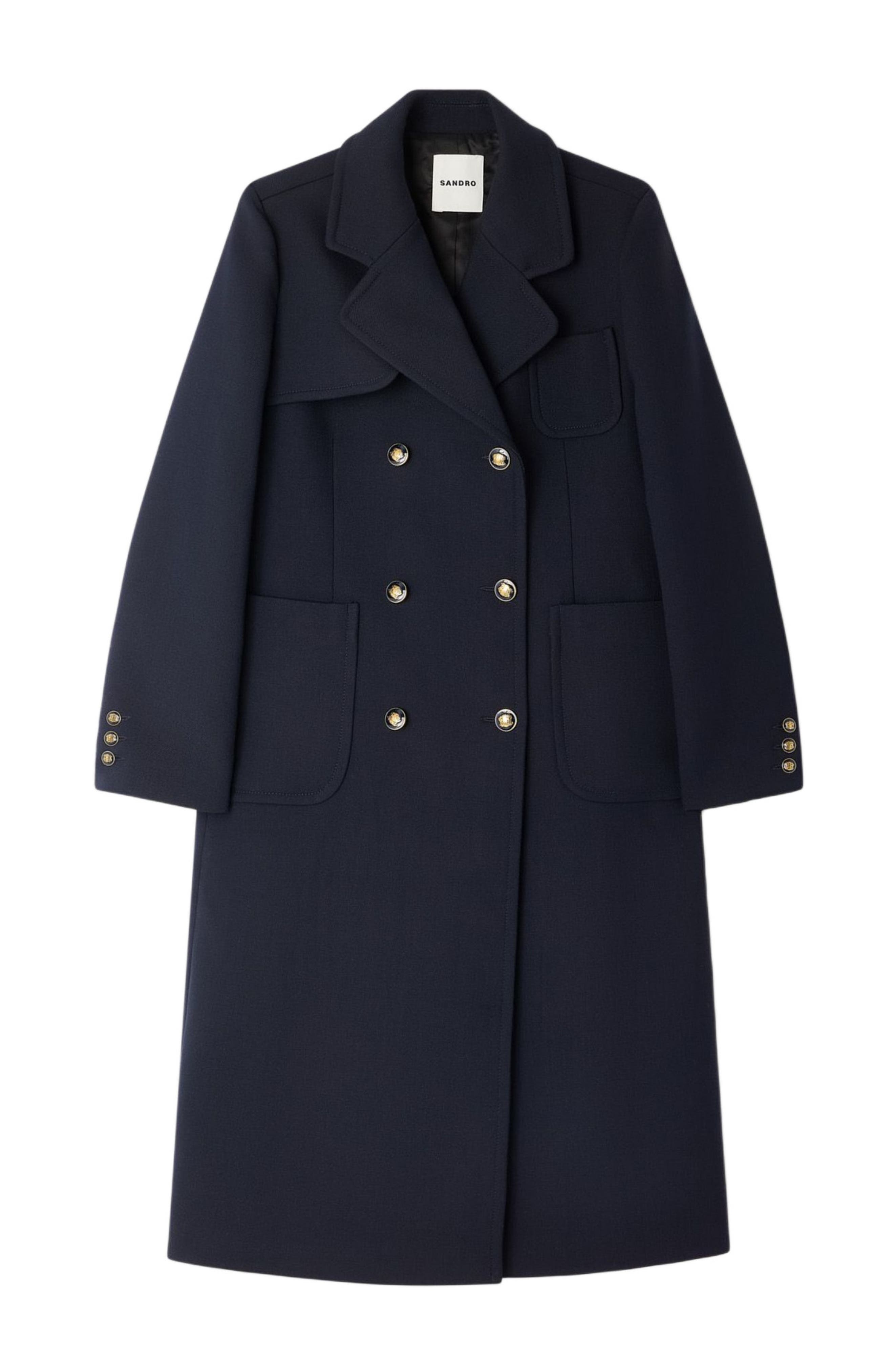 HasSearch:true searchTerm: SANDRO Structured long double-breasted coat_Navy Blue