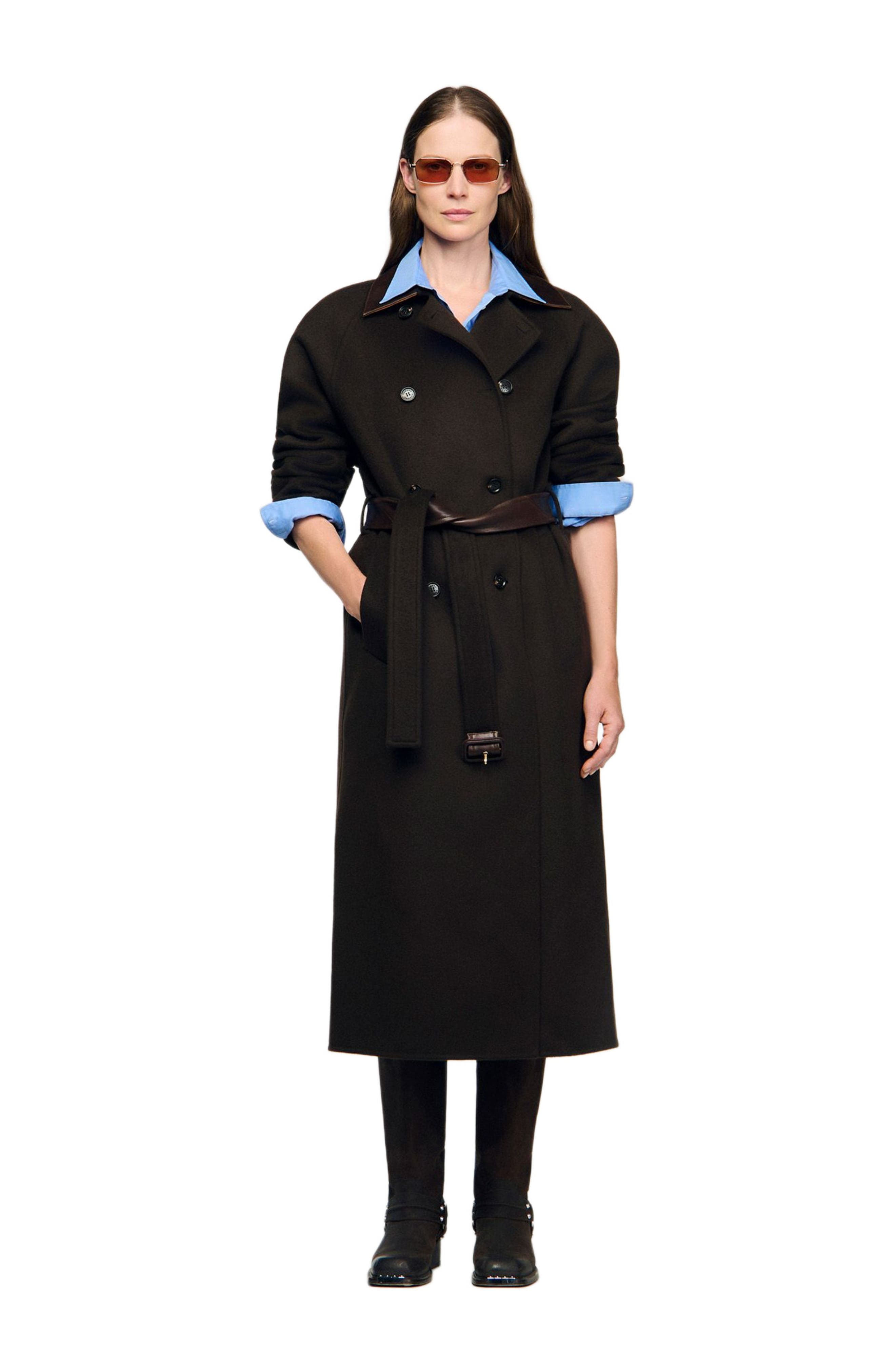 HasSearch:true searchTerm: SANDRO Long wool and leather coat_Brown
