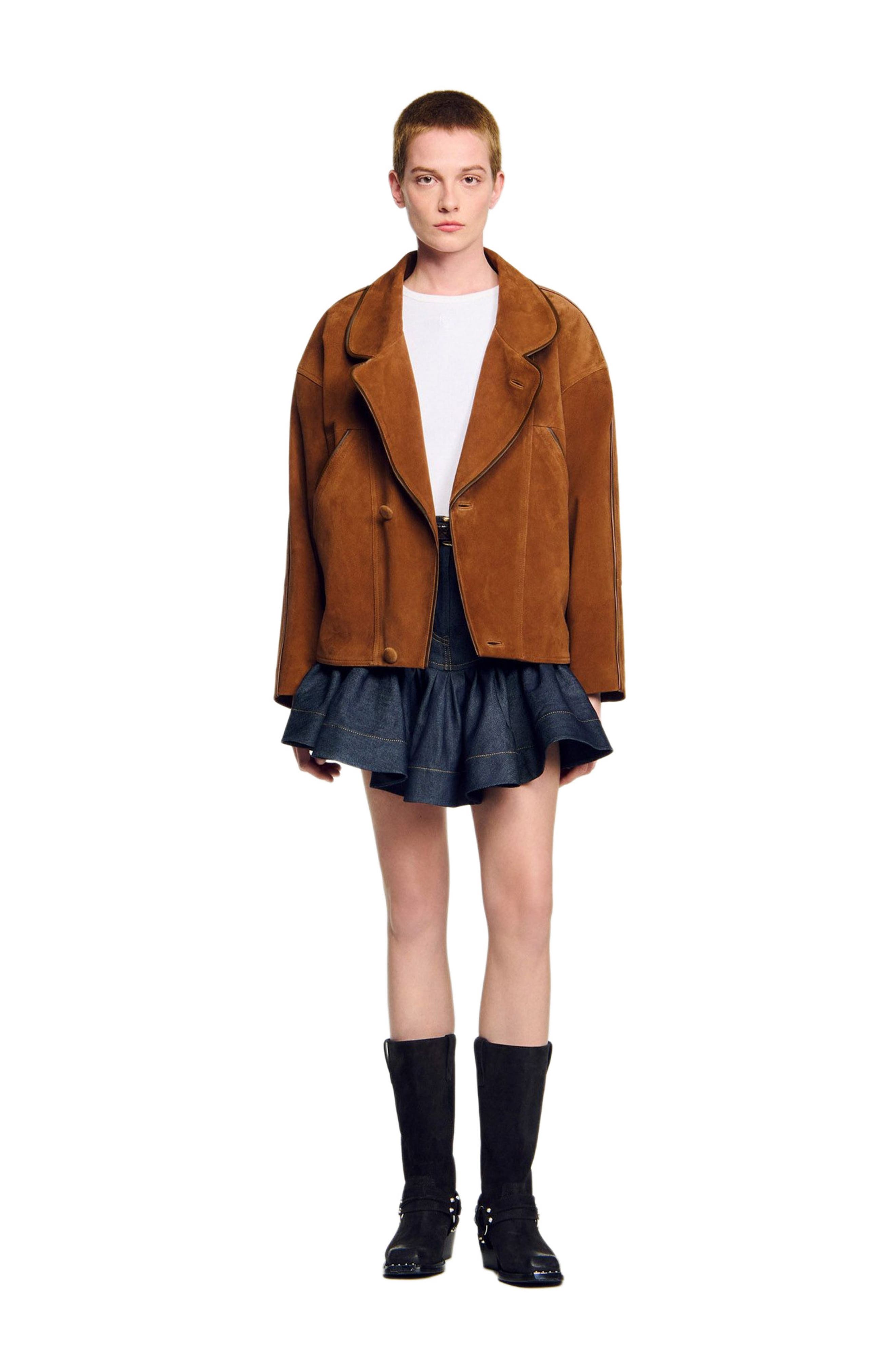 HasSearch:true searchTerm: SANDRO Oversized suede jacket_Brown