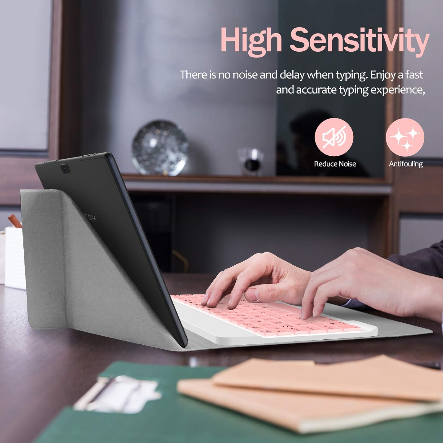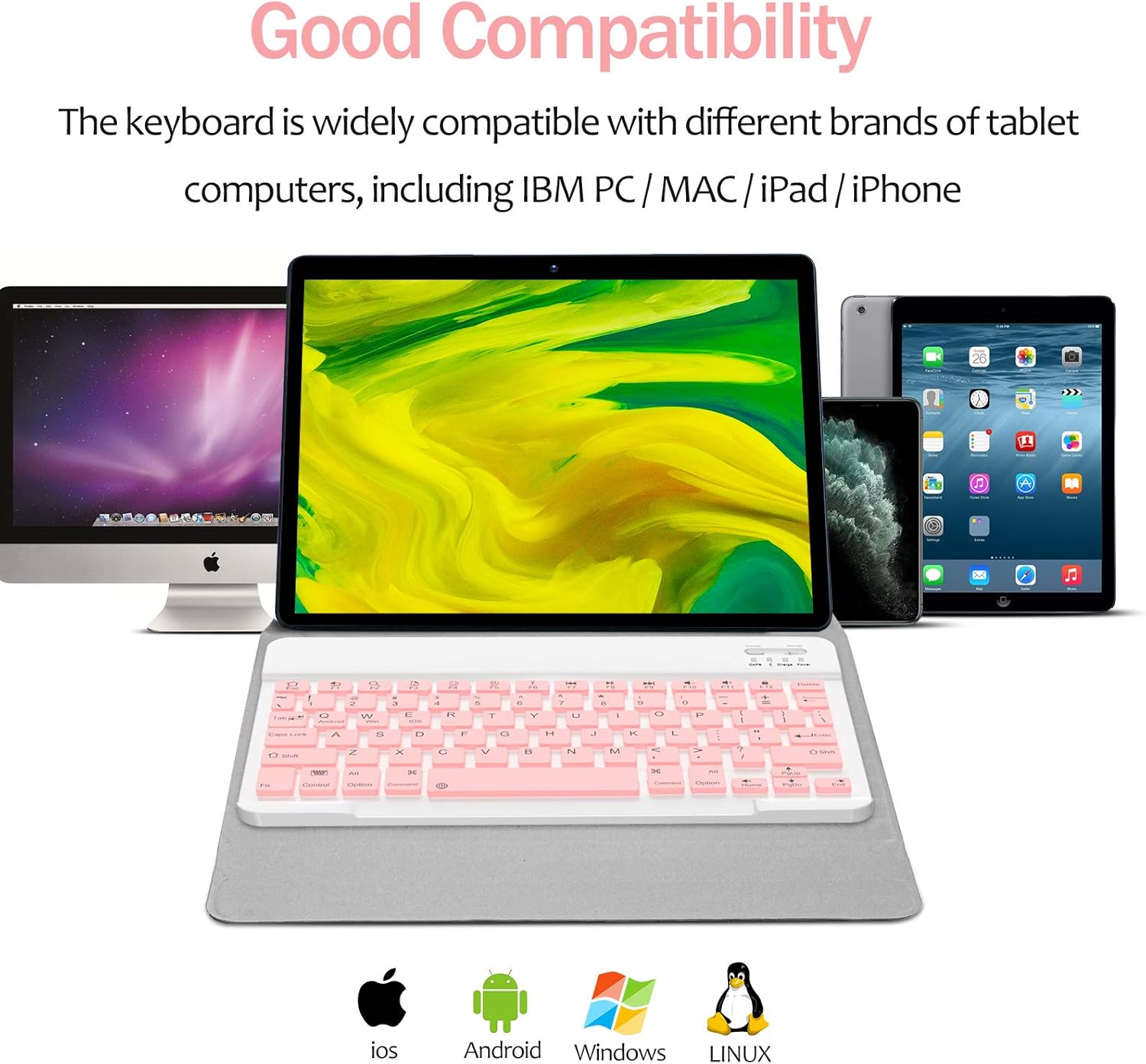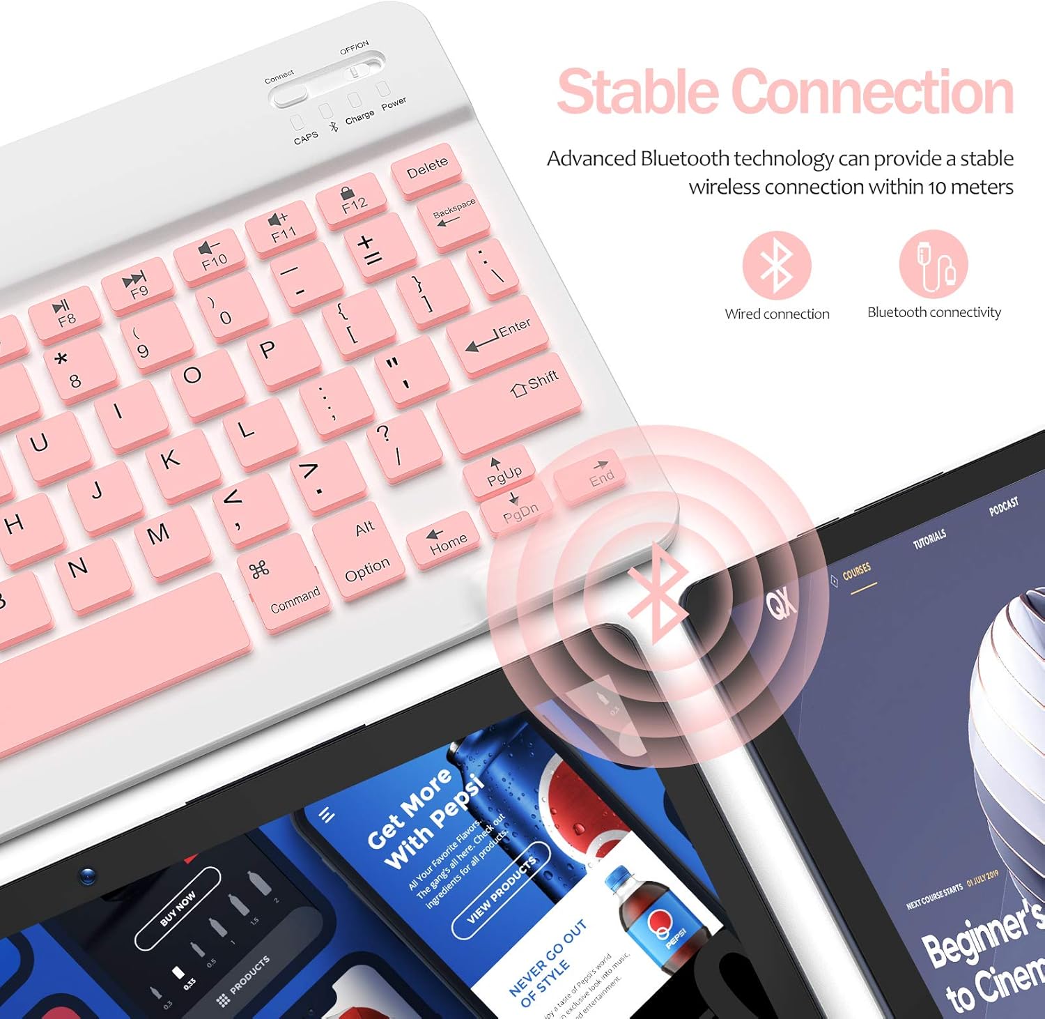 Ubrand ACYMALL Universal Rechargeable Keyboard with Leather Cover Stand,Slim and Portable Bluetooth Keyboard for IBM PC/MAC/iPad/iPhone/Samsung Tablet-(White&Pink)