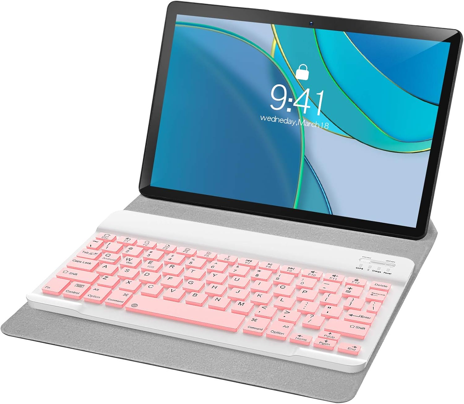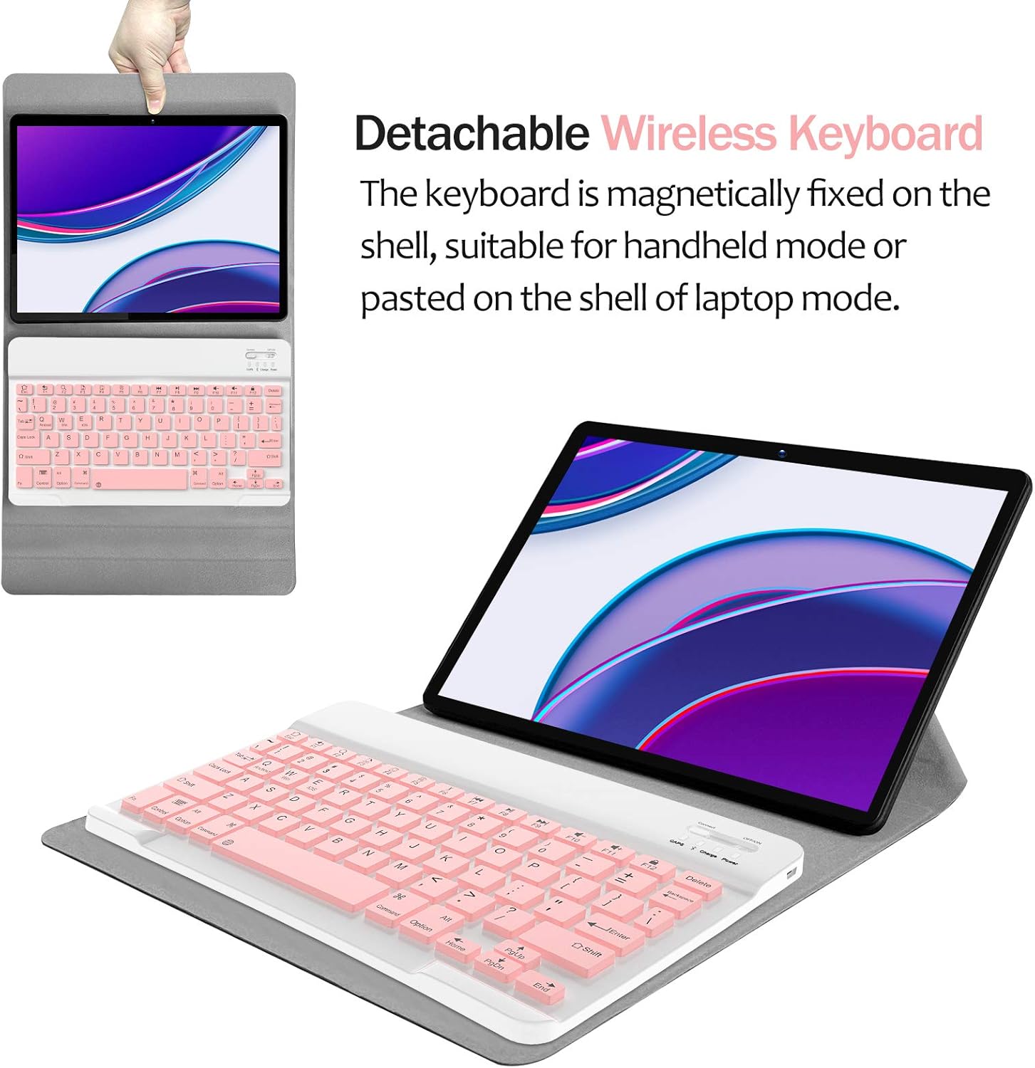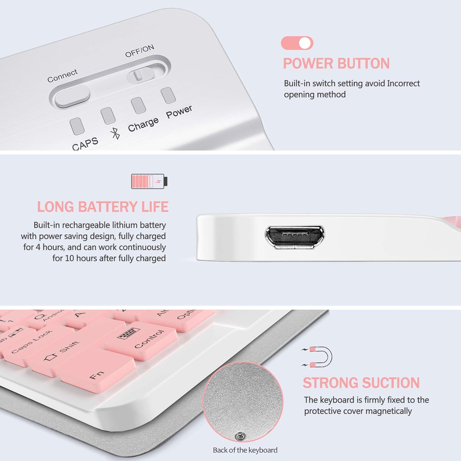 Ubrand ACYMALL Universal Rechargeable Keyboard with Leather Cover Stand,Slim and Portable Bluetooth Keyboard for IBM PC/MAC/iPad/iPhone/Samsung Tablet-(White&Pink)